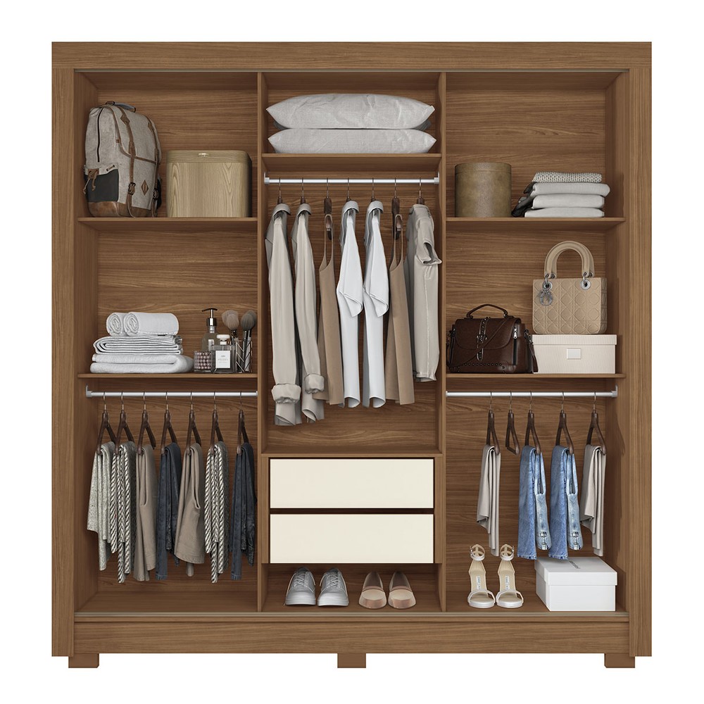Guarda-Roupa Casal Palotina 3 Portas 2 Gavetas Jatoba/Areia com Espelho - Pnr Móveis