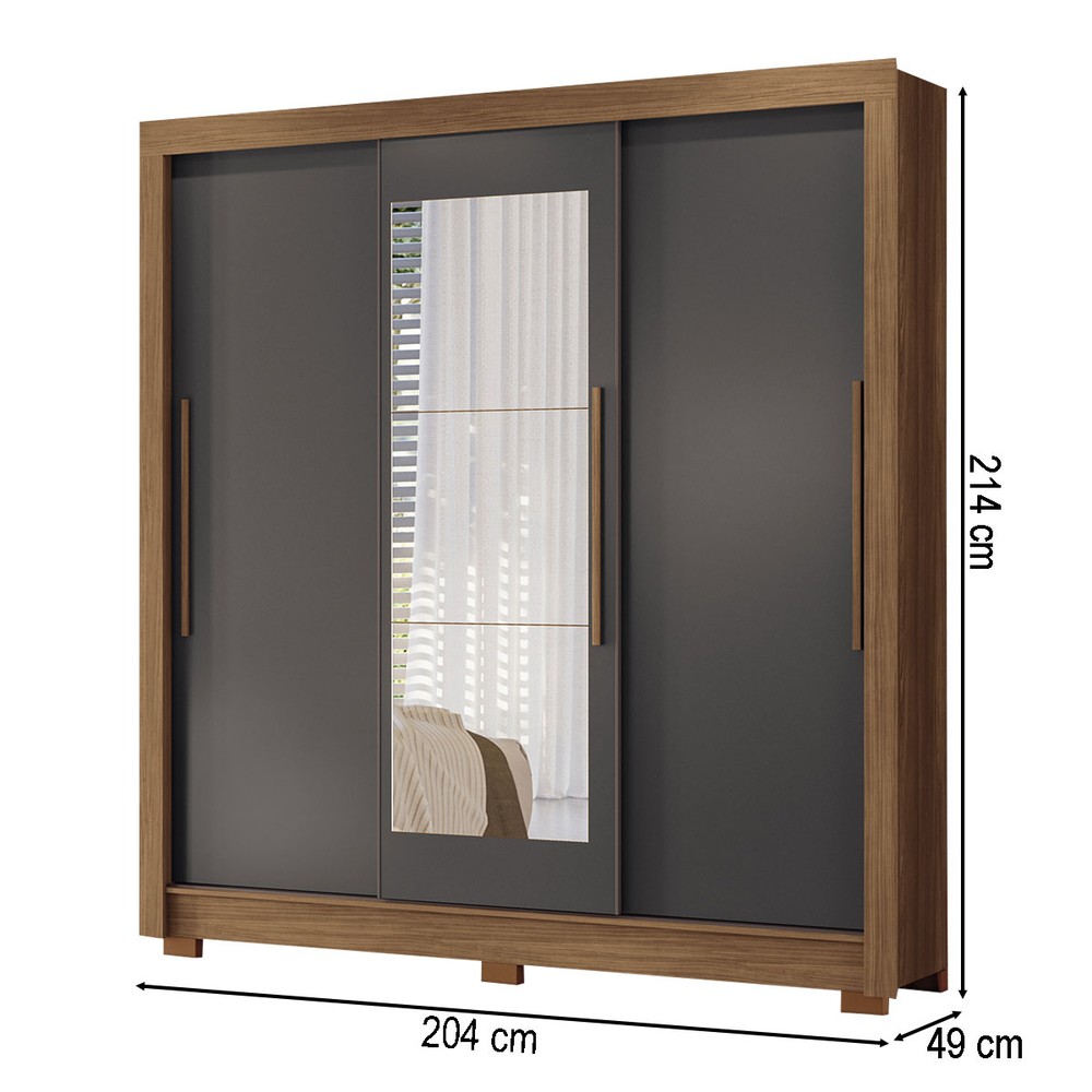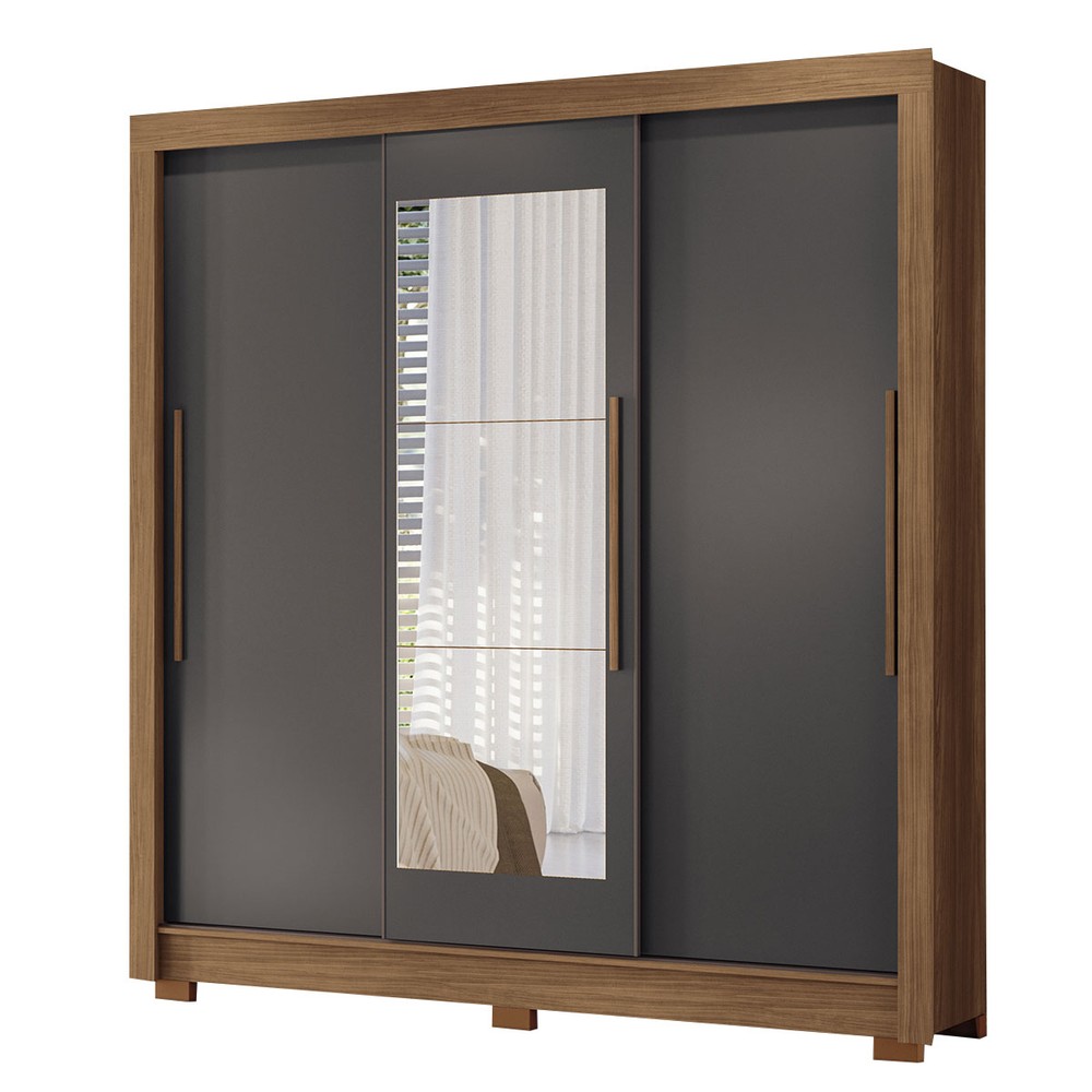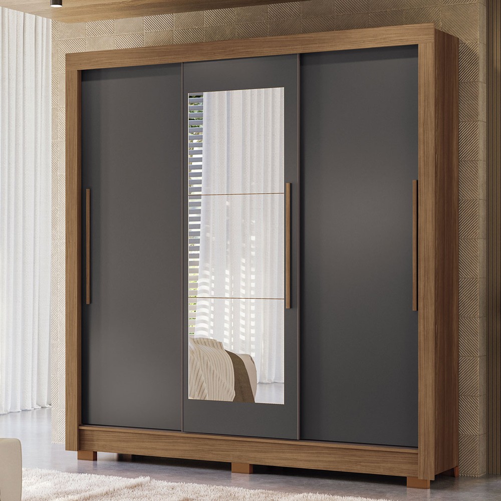 Guarda-Roupa Casal Palotina 3 Portas 2 Gavetas Jatoba/Grafite com Espelho - Pnr Móveis