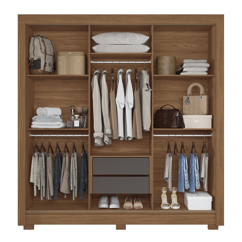 O(a) Guarda-Roupa Casal Palotina 3 Portas 2 Gavetas Jatoba/Grafite com Espelho - Pnr Móveis é produzido em MDF, MDP e HDF na escala de brilho Semi-Brilho, e possui um grau de dificuldade de montagem: Médio.
