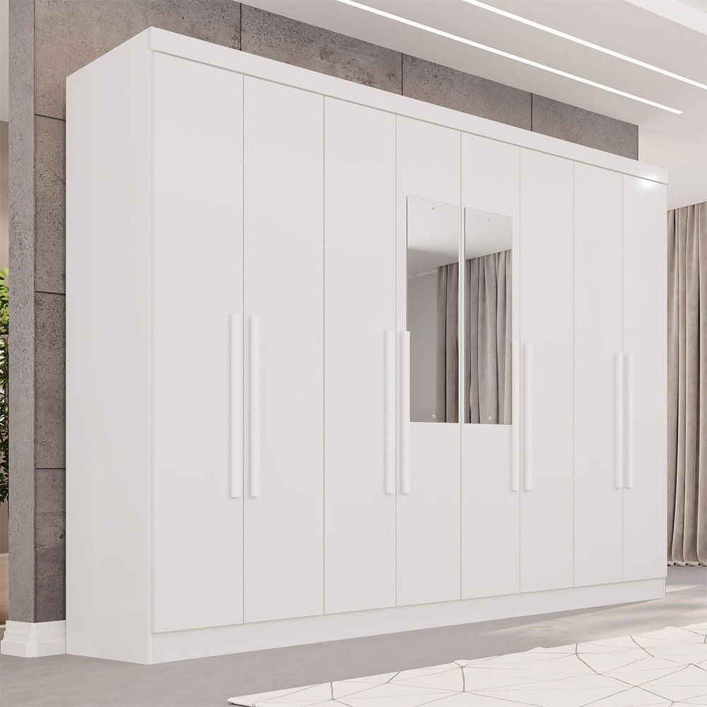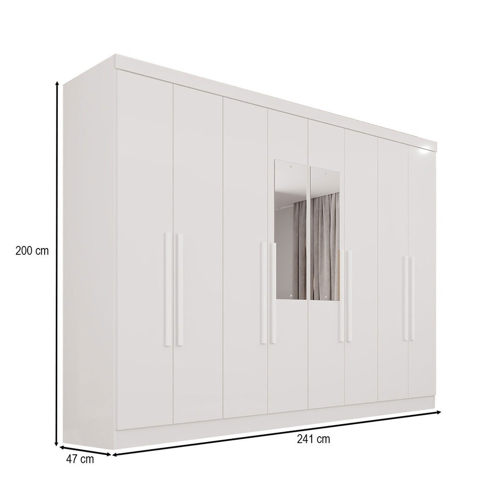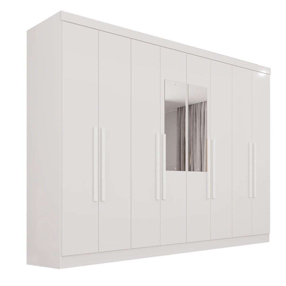 O(a) Guarda-Roupa Casal Pinheiro 8 Portas 4 Gavetas com Espelho Branco - Pnr Móveis é produzido em MDP na escala de brilho Semi-Fosco, e possui um grau de dificuldade de montagem: Médio.