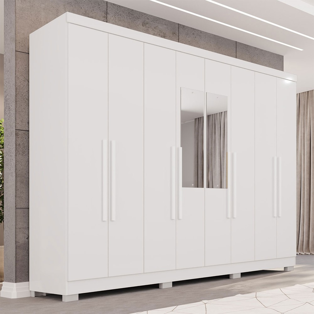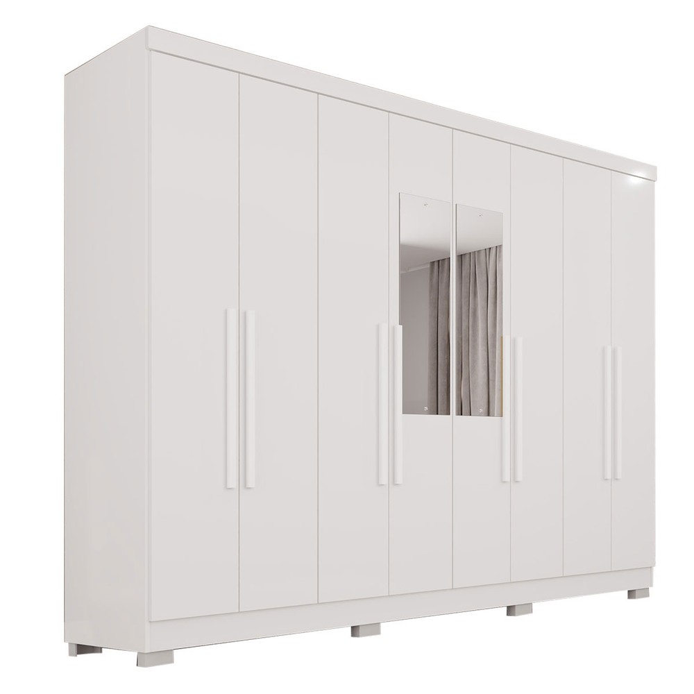 O(a) Guarda-Roupa Casal Pinheiro 8 Portas 4 Gavetas com Pés e Espelho Branco - Pnr Móveis é produzido em MDP na escala de brilho Semi-Fosco, e possui um grau de dificuldade de montagem: Médio.