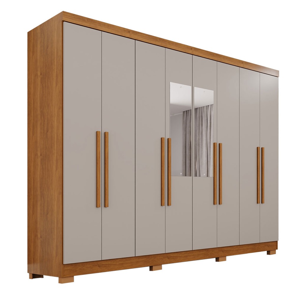 O(a) Guarda-Roupa Casal Pinheiro 8 Portas 4 Gavetas com Pés e Espelho Cinamomo/Off White - Pnr Móveis é produzido em MDP na escala de brilho Semi-Fosco, e possui um grau de dificuldade de montagem: Médio.
