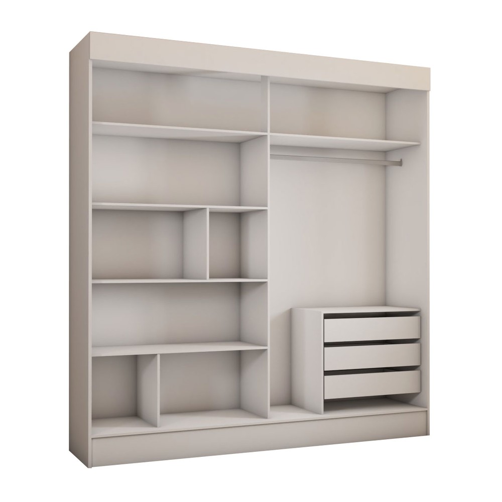 O(a) Guarda-Roupa Casal Portugal 2 Portas de Correr 3 Gavetas Branco Fosco - Panorama Móveis é produzido em MDP na escala de brilho Semi-Brilho, e possui um grau de dificuldade de montagem: Médio.