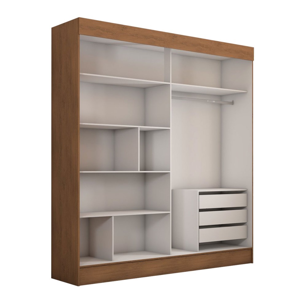 O(a) Guarda-Roupa Casal Portugal 2 Portas de Correr com Espelho 3 Gavetas Cinamomo - Panorama Móveis é produzido em MDP na escala de brilho Semi-Brilho, e possui um grau de dificuldade de montagem: Médio.
