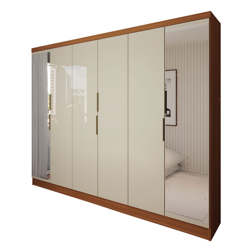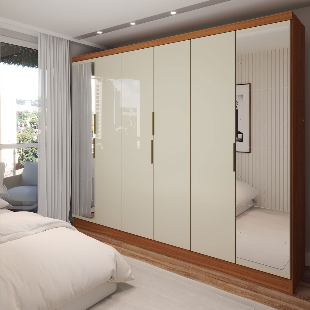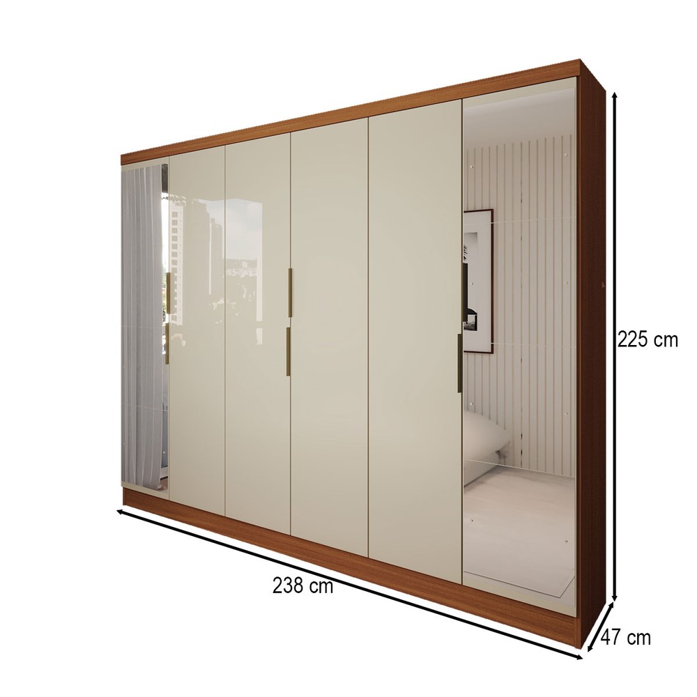 O(a) Guarda-Roupa Casal Prime 6 Portas 4 Gavetas com Espelho Cinamomo/Off White - Panorama Móveis é produzido em MDP na escala de brilho Brilhante, e possui um grau de dificuldade de montagem: Médio.