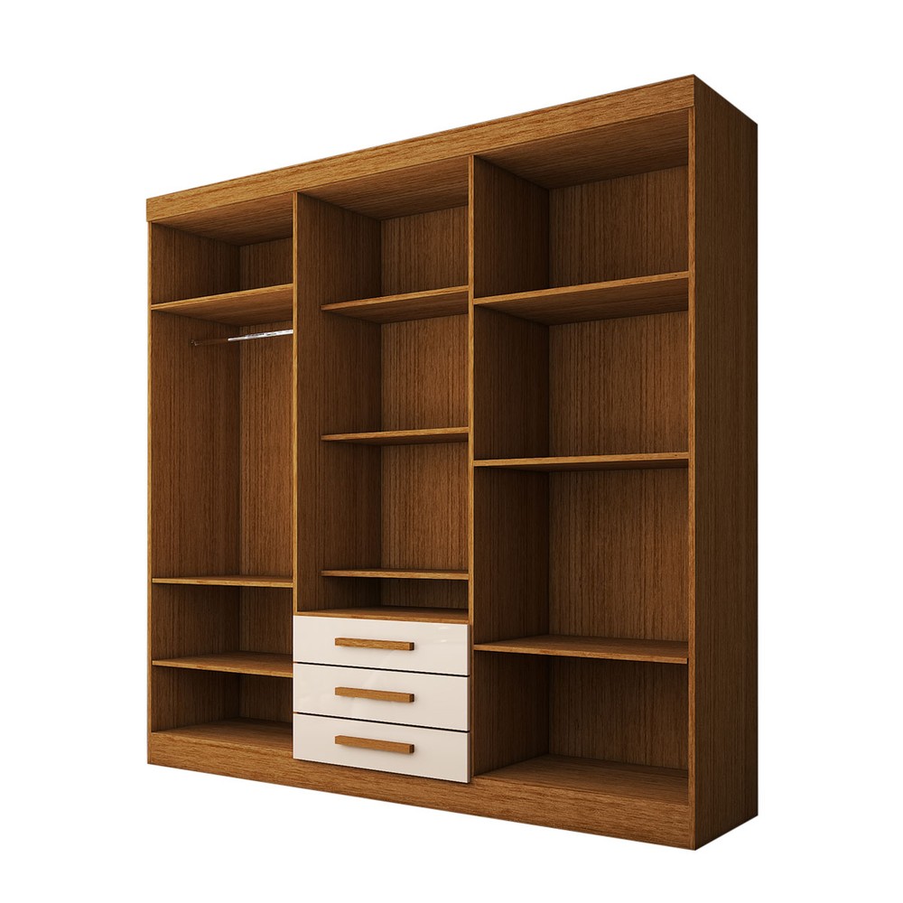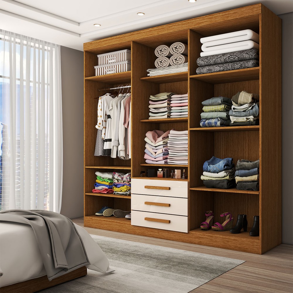 O(a) Guarda-Roupa Casal Real 6 Portas 3 Gavetas com Espelho 100% Mdf Cinamomo/Off White - Panorama Móveis é produzido em 100% MDF na escala de brilho Brilhante e Semi-Brilho, e possui um grau de dificuldade de montagem: Difícil.