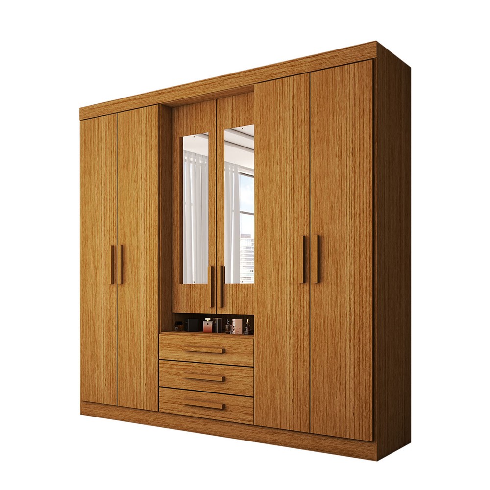 O(a) Guarda-Roupa Casal Real 6 Portas 3 Gavetas com Espelho 100% Mdf Cinamomo - Panorama Móveis é produzido em 100% MDF na escala de brilho Brilhante e Semi-Brilho, e possui um grau de dificuldade de montagem: Difícil.