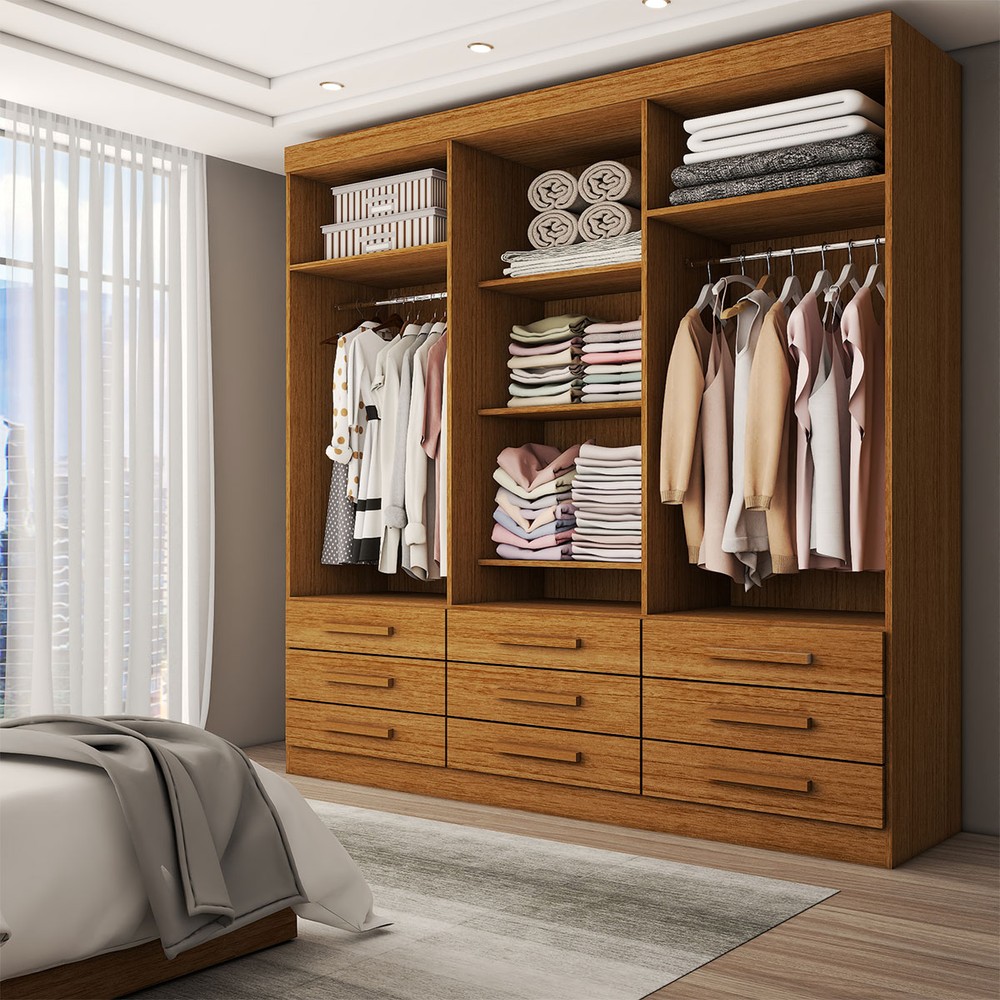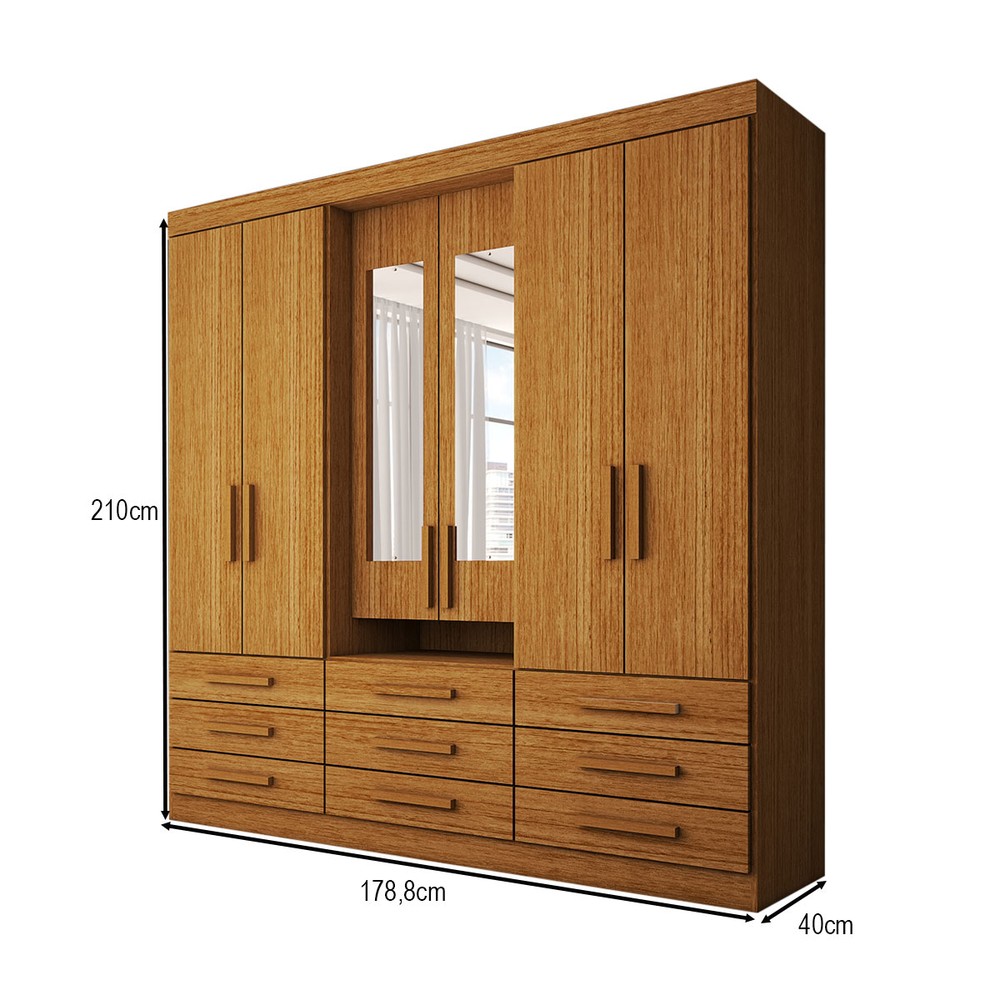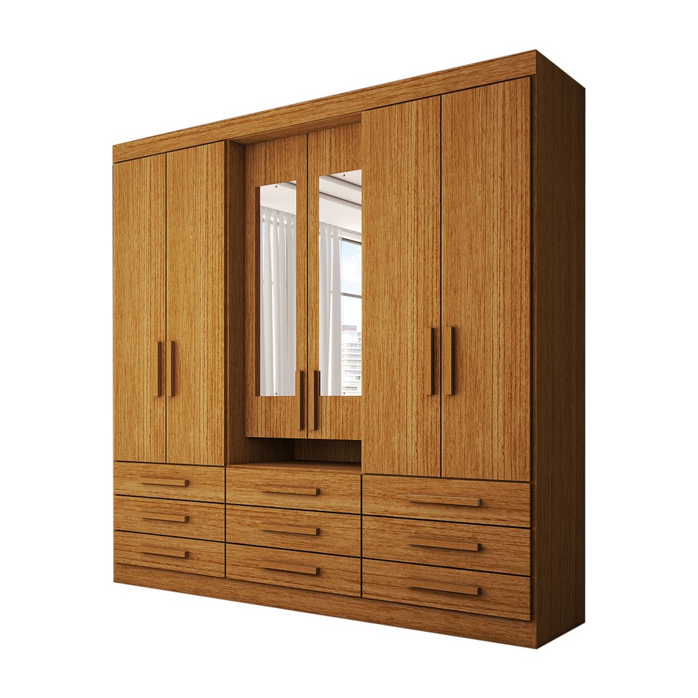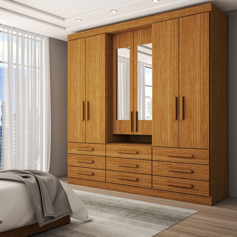 O(a) Guarda-Roupa Casal Real 6 Portas 9 Gavetas com Espelho 100% Mdf Cinamomo - Panorama Móveis é produzido em 100% MDF na escala de brilho Brilhante e Semi-Brilho, e possui um grau de dificuldade de montagem: Médio.