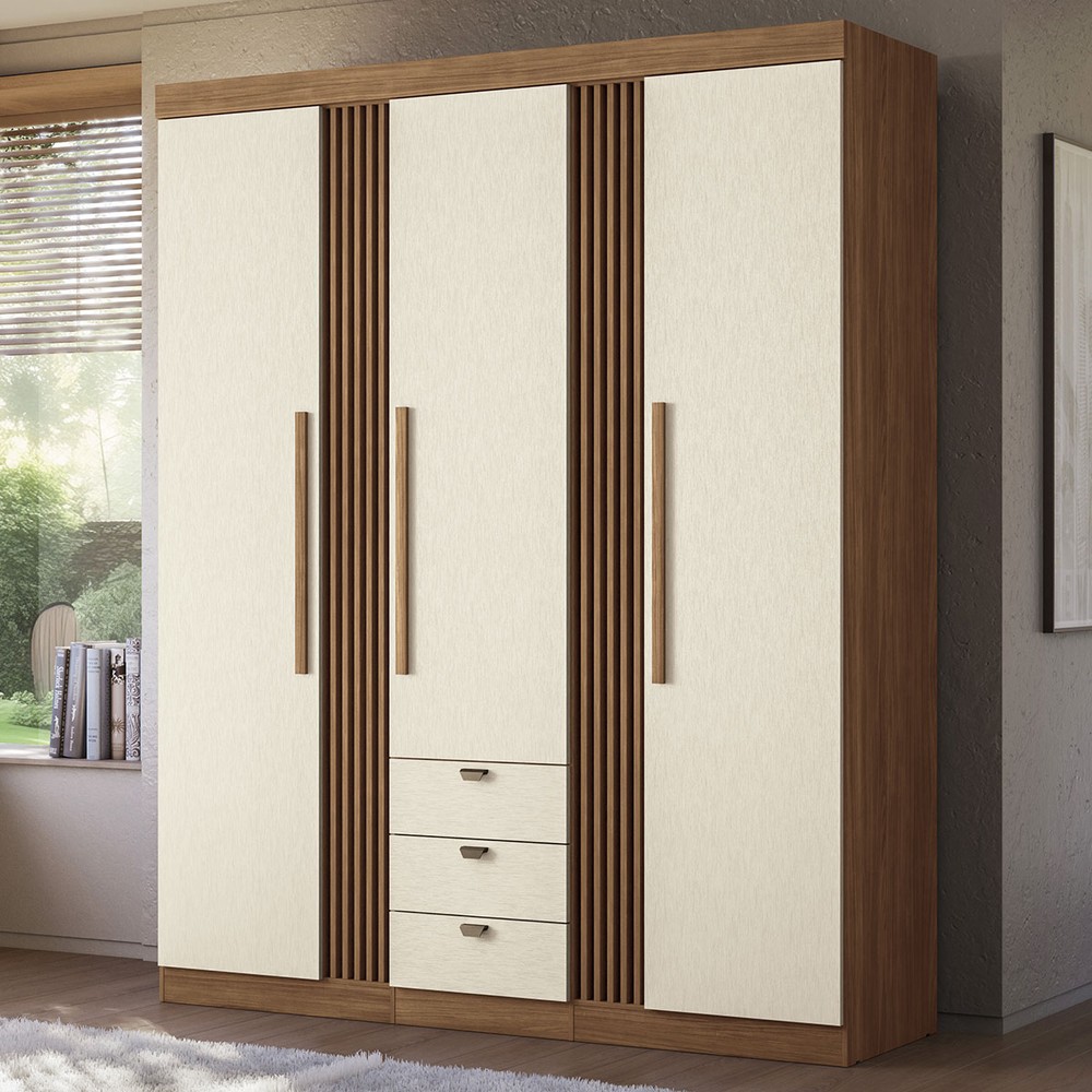 O(a) Guarda-Roupa Casal Roswell 3 Portas 3 Gavetas Ripado Jatoba/Areia - Pnr Móveis é produzido em MDP e HDF na escala de brilho Semi-Brilho, e possui um grau de dificuldade de montagem: Médio.