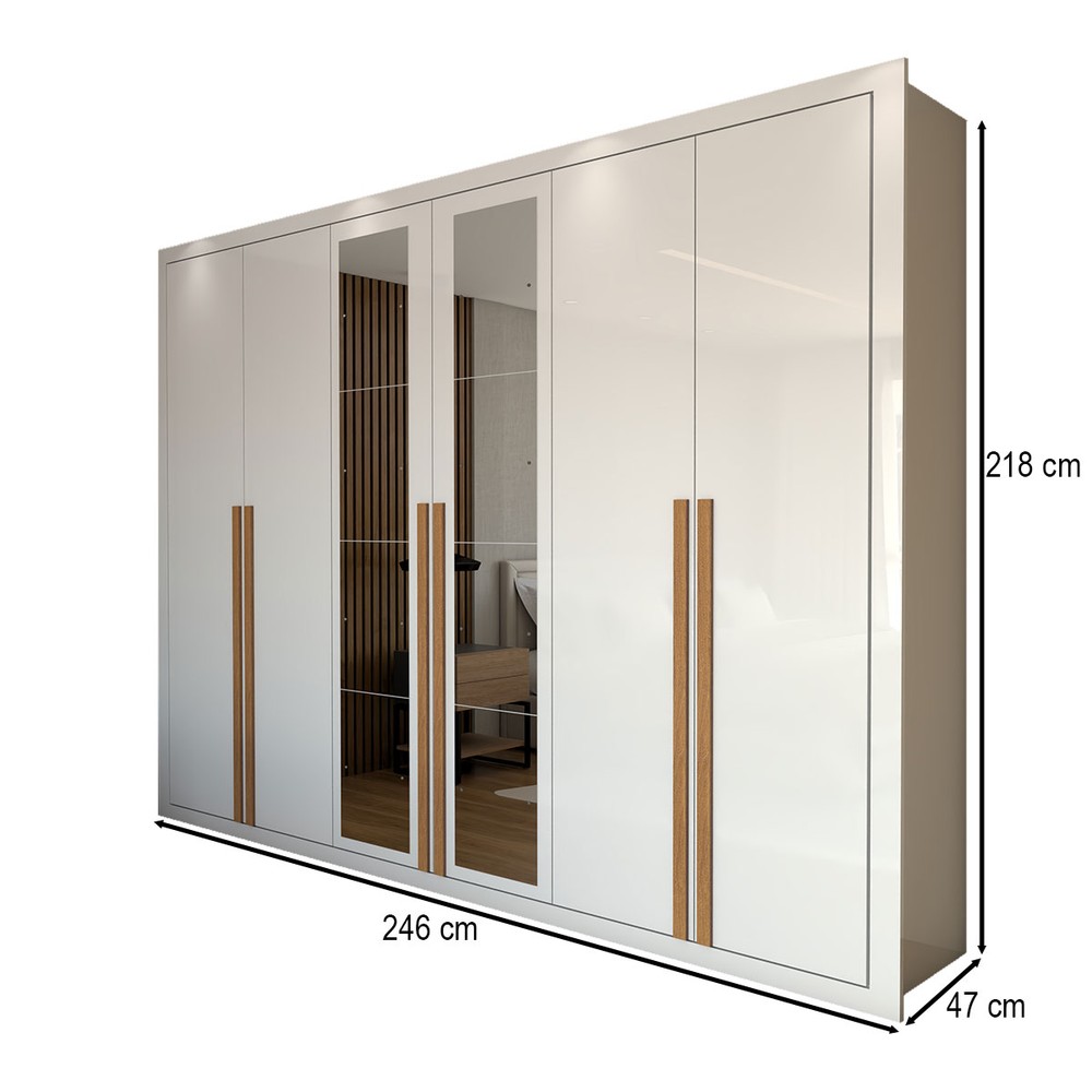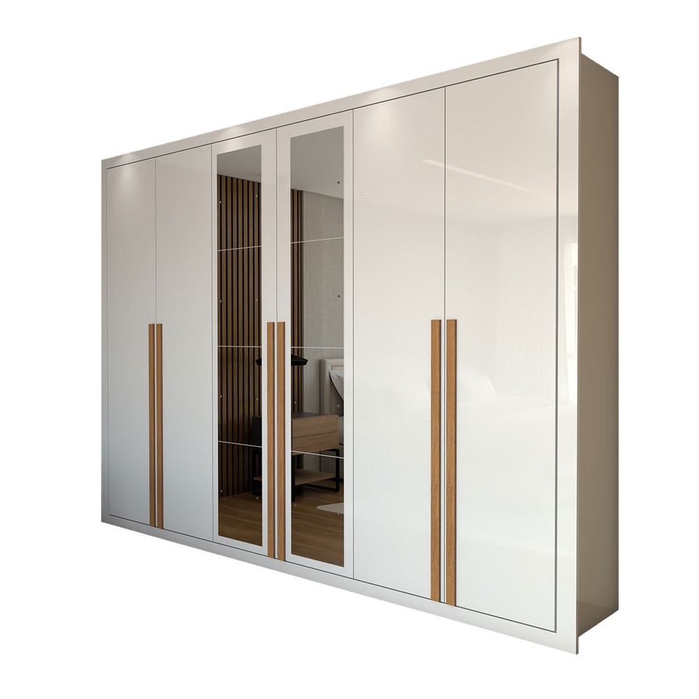 O(a) Guarda-Roupa Casal Saint 6 Portas 6 Gavetas com Espelho Branco - Panorama Móveis é produzido em MDP na escala de brilho Fosco e Semi-Brilho, e possui um grau de dificuldade de montagem: Médio.