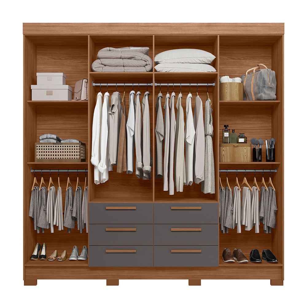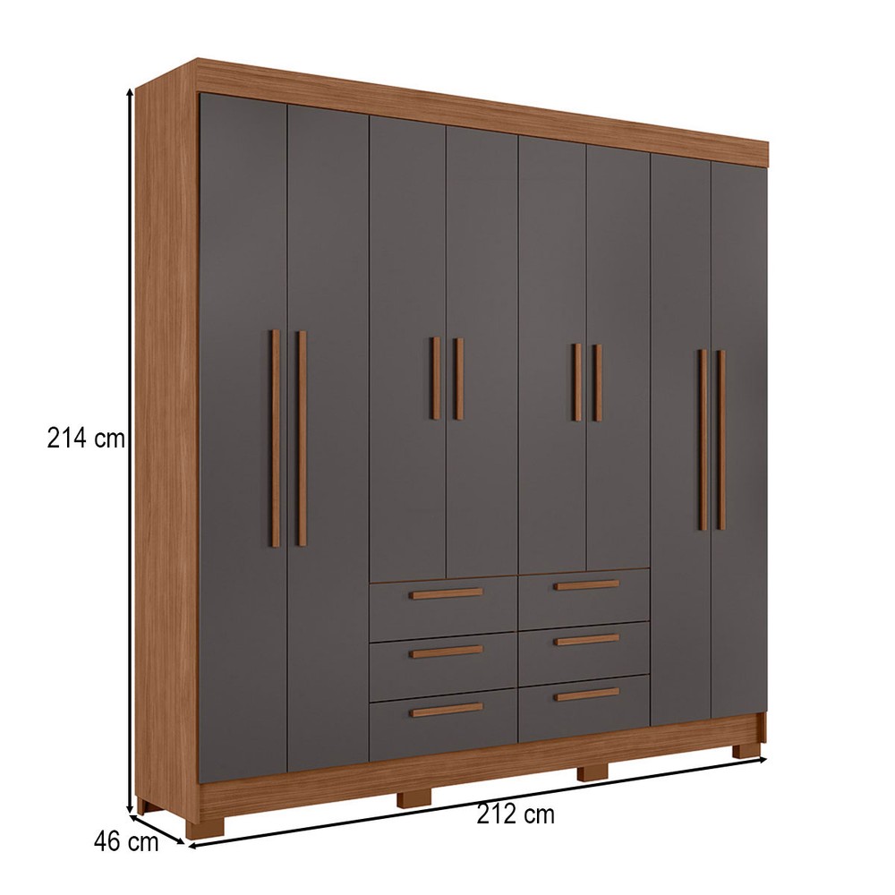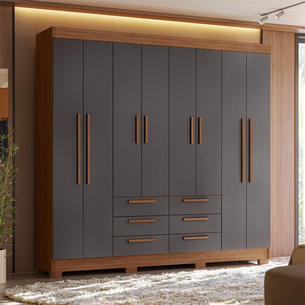 O(a) Guarda-Roupa Casal Santana 8 Portas 6 Gavetas Jatoba/Grafite - Pnr Móveis é produzido em MDP na escala de brilho Semi-Brilho, e possui um grau de dificuldade de montagem: Médio.