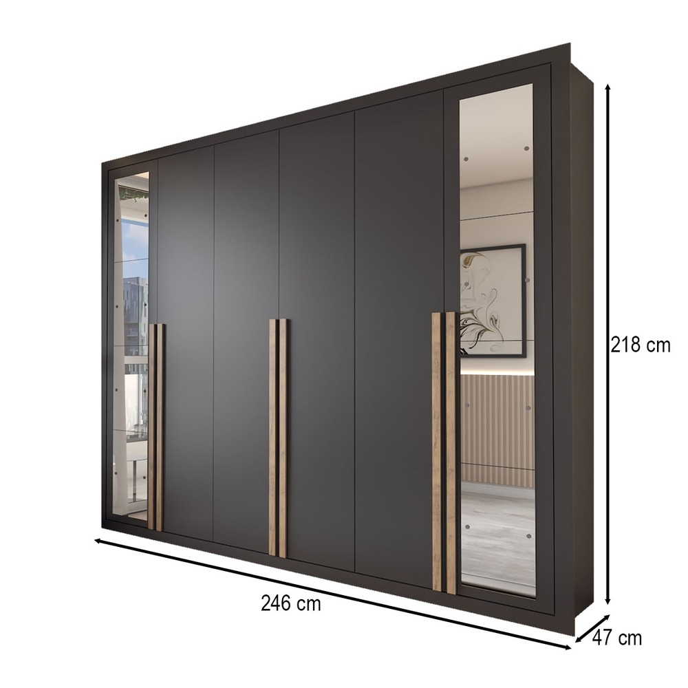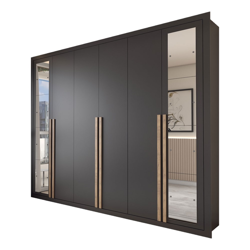 O(a) Guarda-Roupa Casal Severo Gold 6 Portas 6 Gavetas com Espelho Preto - Panorama Móveis é produzido em MDP na escala de brilho Brilhante, e possui um grau de dificuldade de montagem: Médio.