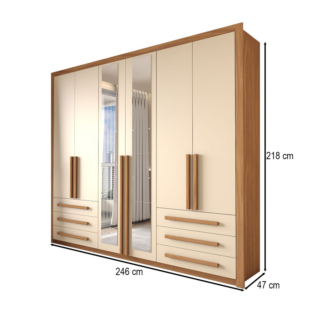 O(a) Guarda-Roupa Casal Severo Plus 6 Portas 6 Gavetas com Espelho Cinamomo/Off White - Panorama Móveis é produzido em MDP na escala de brilho Brilhante, e possui um grau de dificuldade de montagem: Médio.