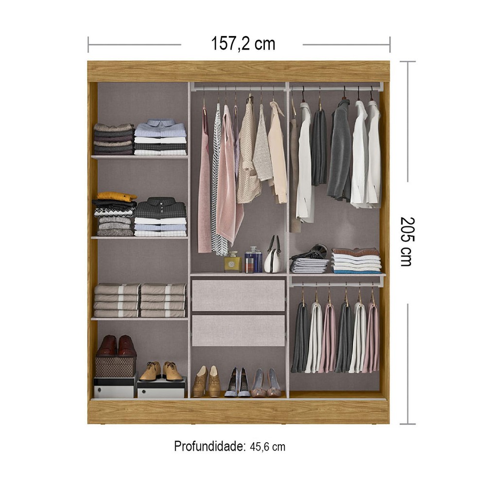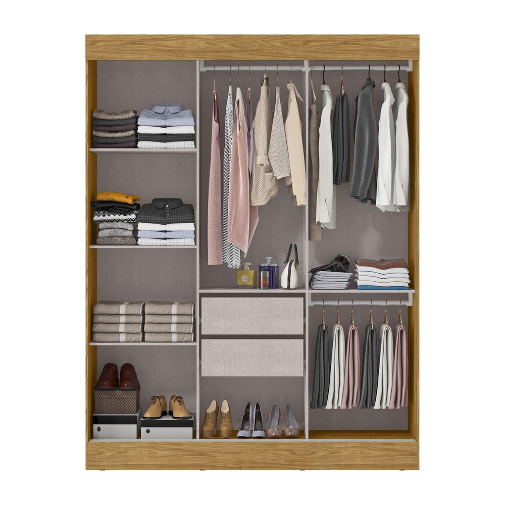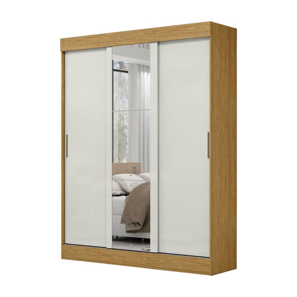 Guarda-Roupa Casal Sirius 3 Portas 2 Gavetas com Espelho Marrocos/Off White - Mx Móveis