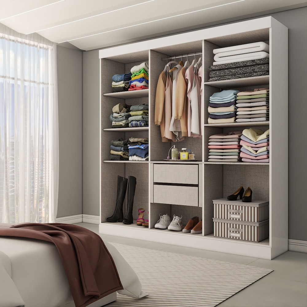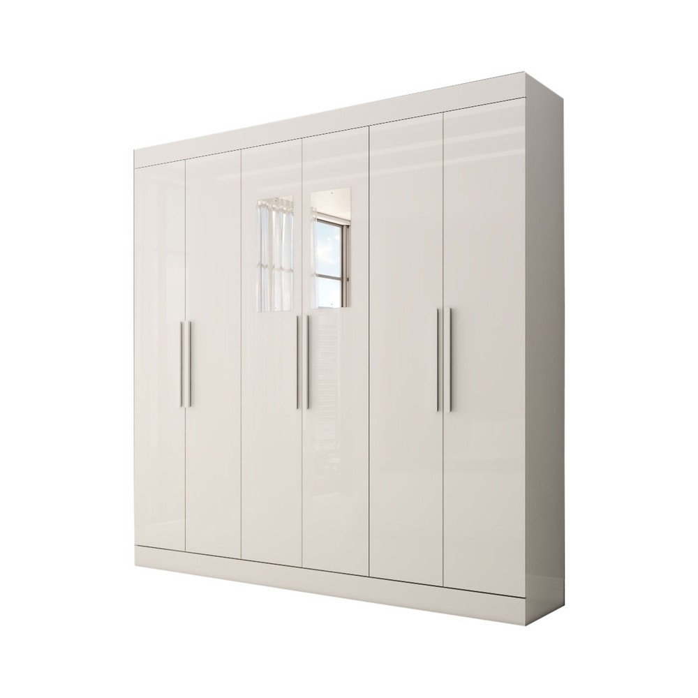 O(a) Guarda-Roupa Casal Splendore 6 Portas 2 Gavetas com Espelho 100% Mdf Branco - Panorama Móveis é produzido em 100% MDF na escala de brilho Brilhante e Semi-Brilho, e possui um grau de dificuldade de montagem: Difícil.