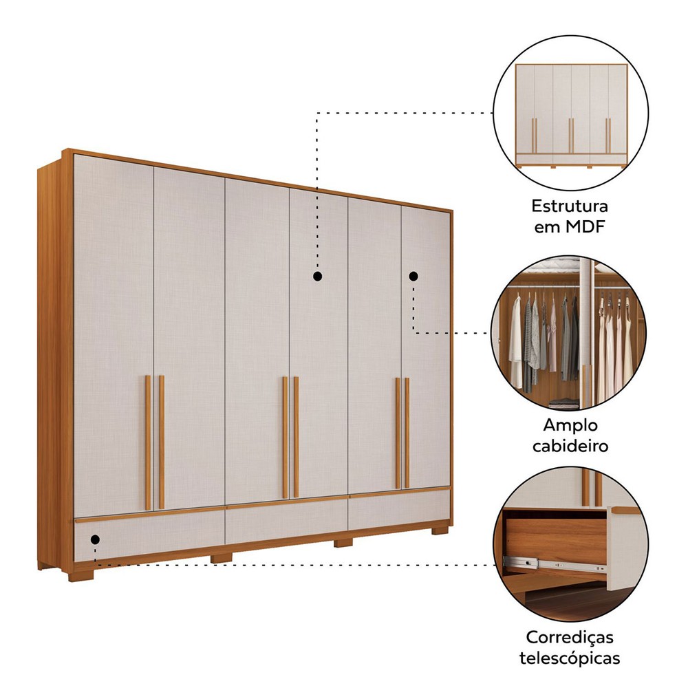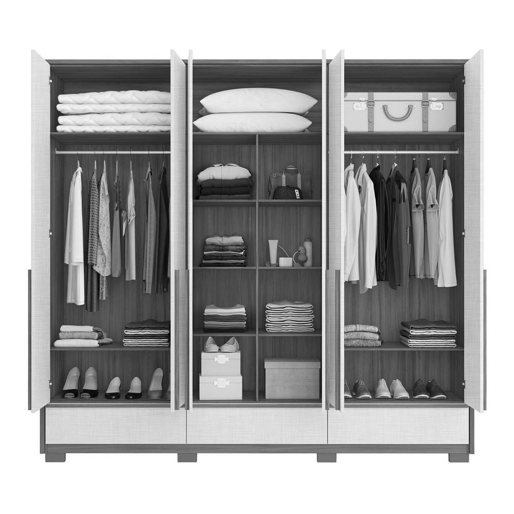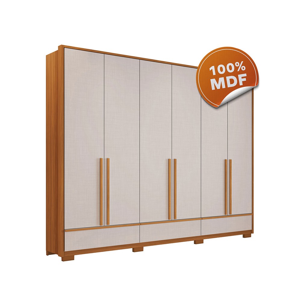 O(a) Guarda-Roupa Casal Tech 6 Portas 3 Gavetas 100% Mdf Freijó Trend/Off White Tx - Pnr Móveis é produzido em 100% MDF na escala de brilho Fosco, e possui um grau de dificuldade de montagem: Médio.