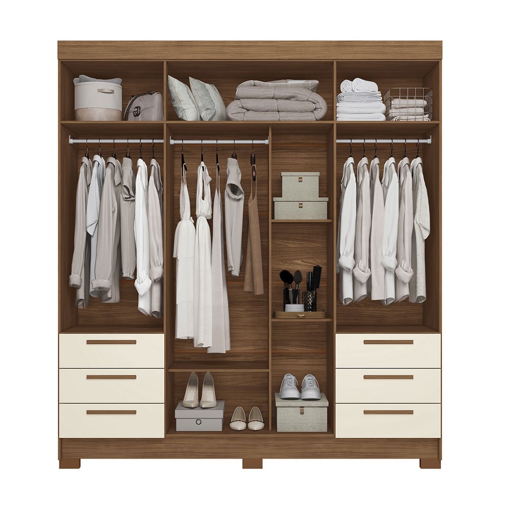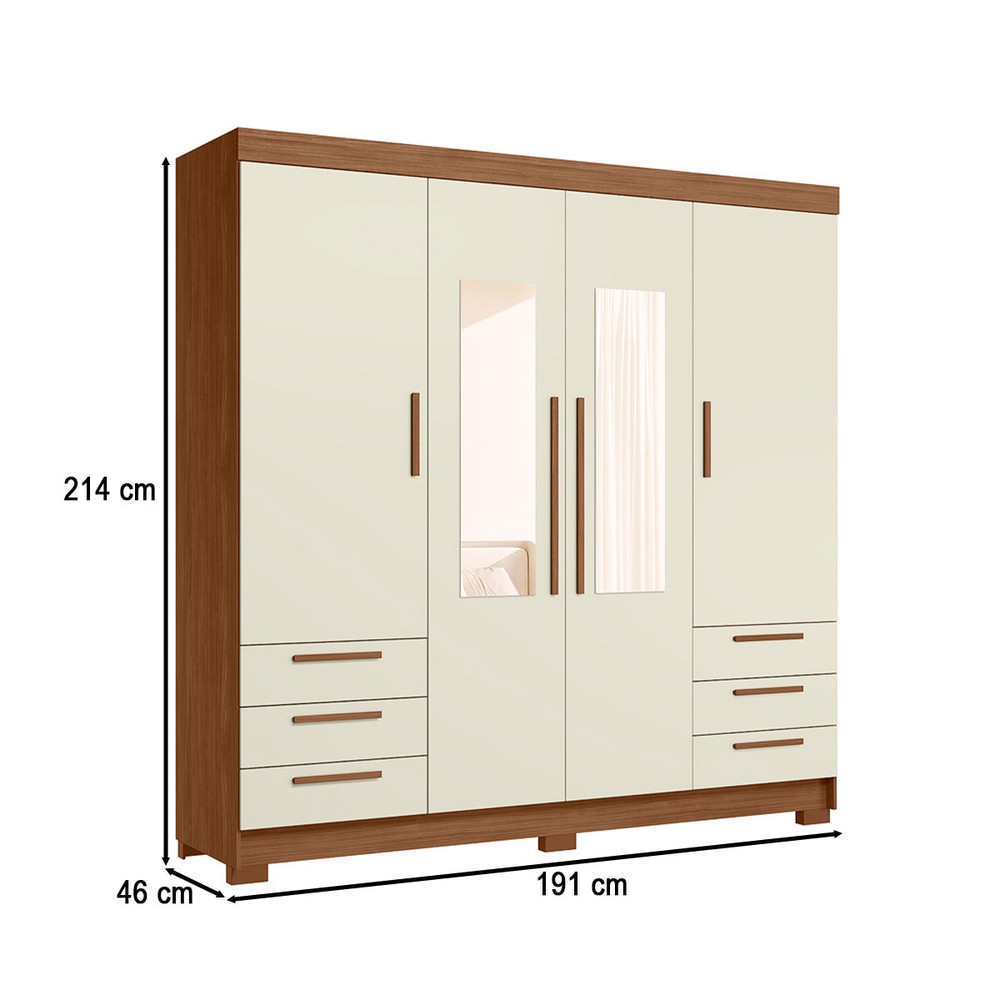 O(a) Guarda-Roupa Casal Tibagi 4 Portas 6 Gavetas com Espelho Jatoba/Areia - Pnr Móveis é produzido em MDP na escala de brilho Semi-Brilho e Semi-Fosco, e possui um grau de dificuldade de montagem: Médio.
