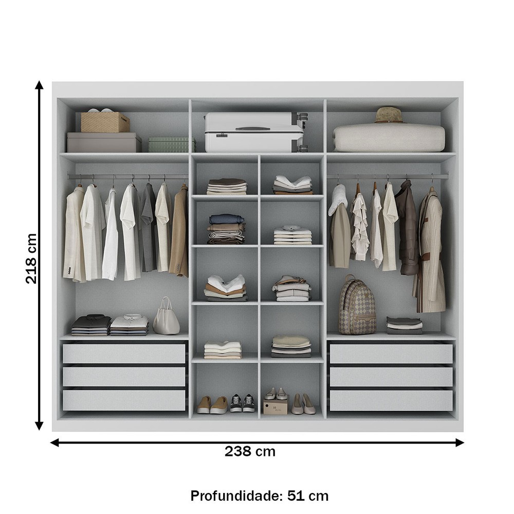 O(a) Guarda-Roupa Casal Senna 3 Portas 6 Gavetas com Espelho Branco - Maxel é produzido em MDP na escala de brilho Brilhante e Fosco, e possui um grau de dificuldade de montagem: Médio.