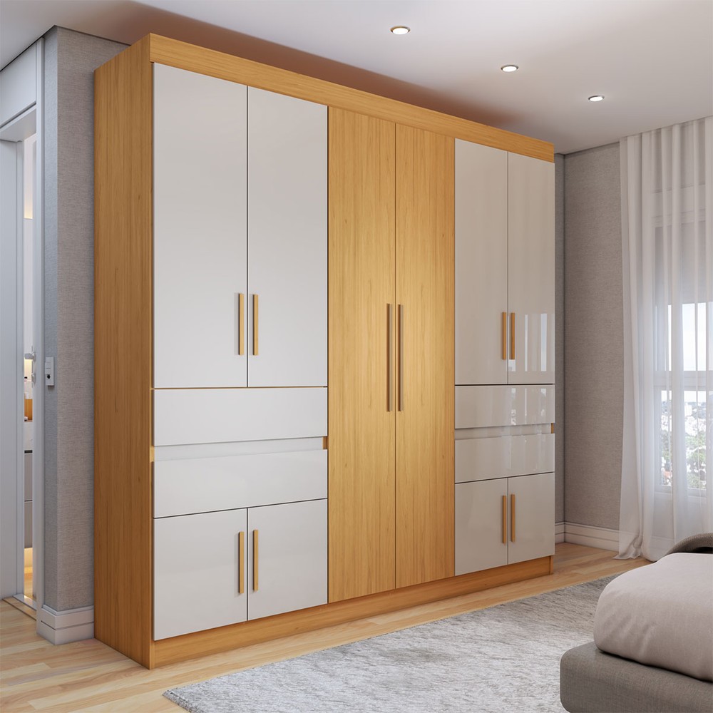 O(a) Guarda-Roupa Casal Triano 10 Portas 4 Gavetas Cinamon/Off-White - Panorama Móveis é produzido em MDP na escala de brilho Brilho e Fosco, e possui um grau de dificuldade de montagem: Difícil.
