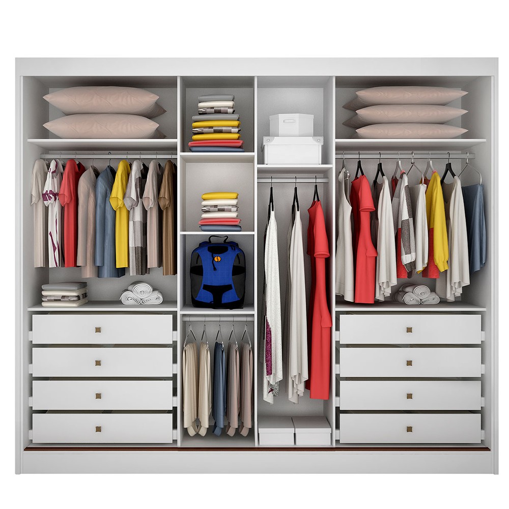 O(a) Guarda-Roupa Casal Tullins 3 Portas 8 Gavetas 100% Mdf Neve - Pnr Móveis é produzido em 100% MDF na escala de brilho Semi-Fosco, e possui um grau de dificuldade de montagem: Médio.