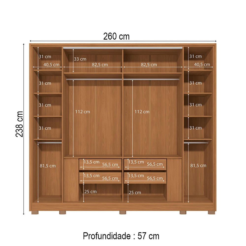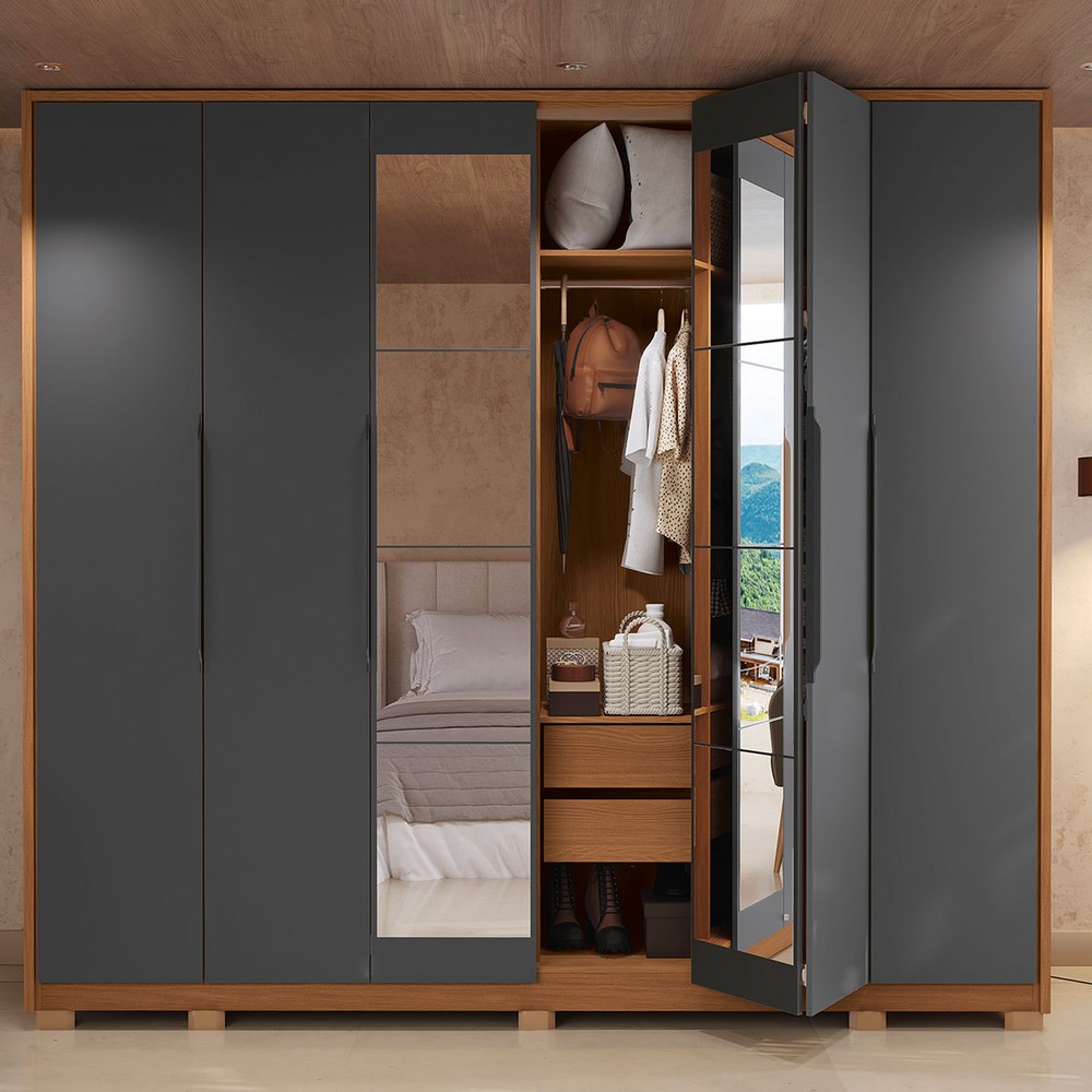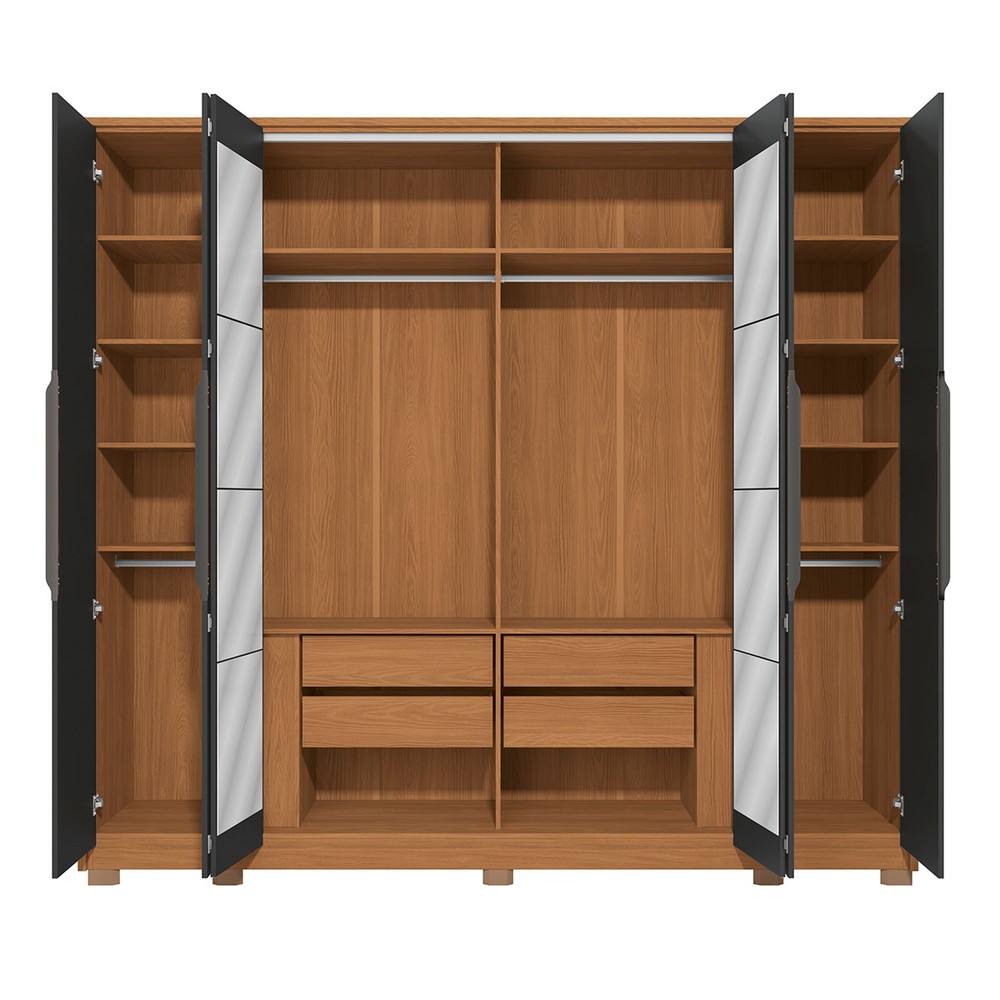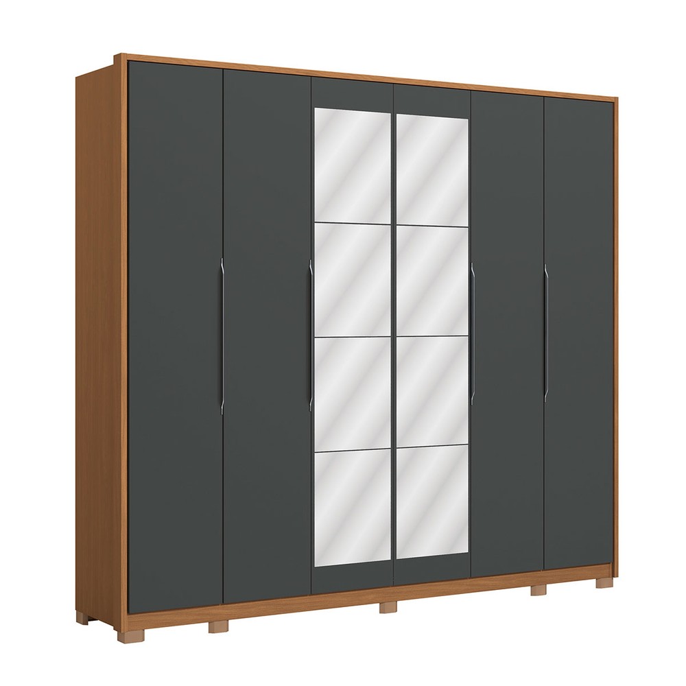 Guarda-Roupa Casal Vernet 6 Portas 4 Gavetas com Espelho Canela/Grafite - Kappesberg