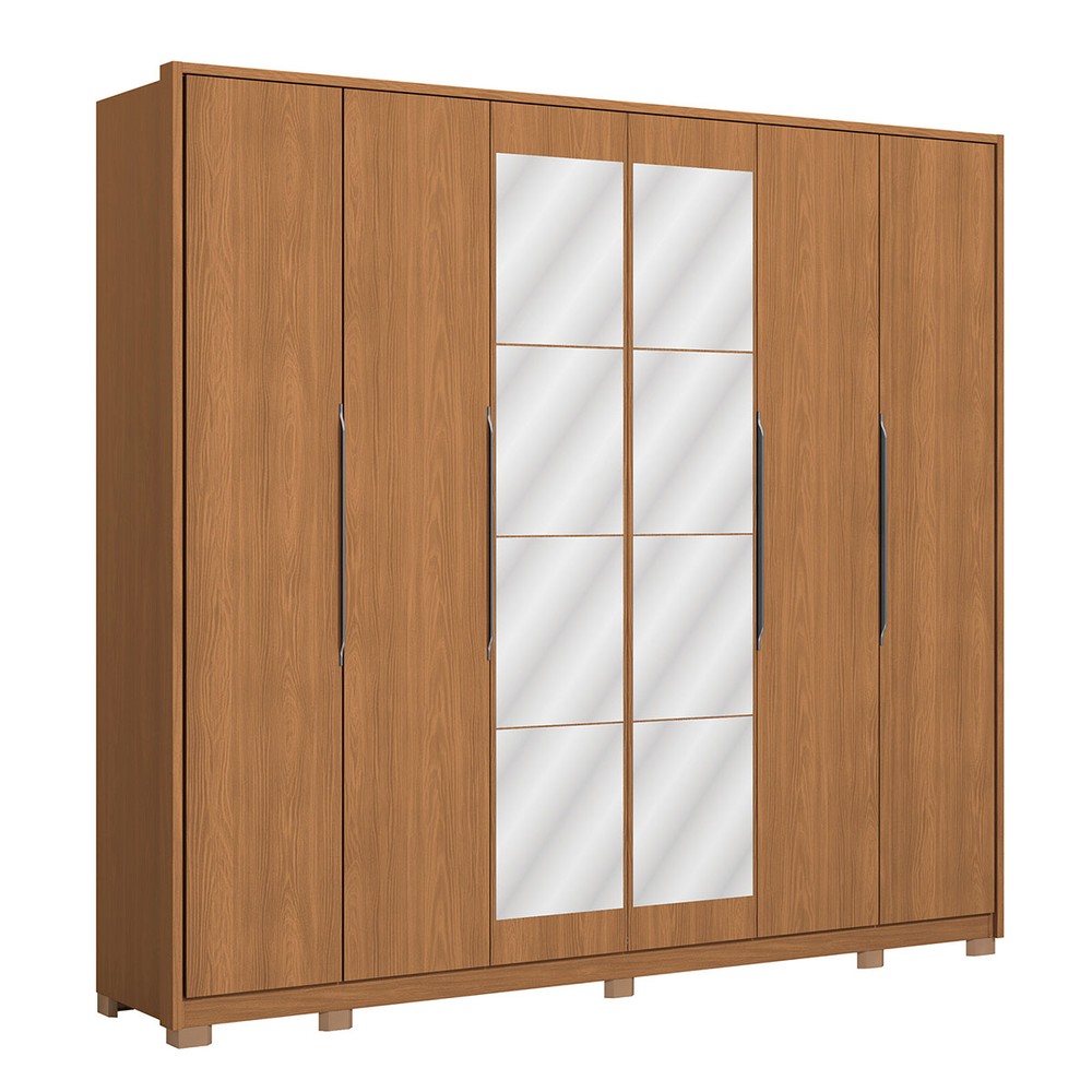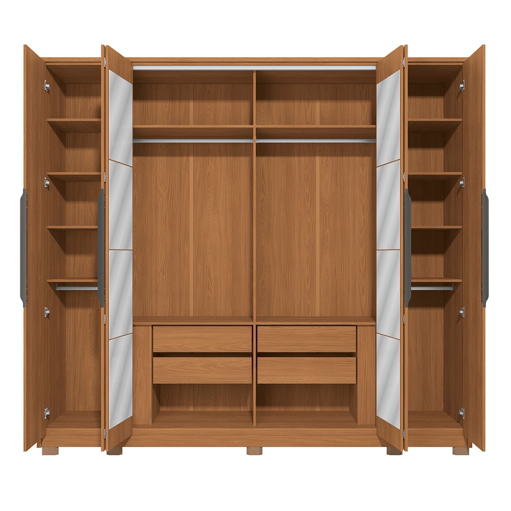 Guarda-Roupa Casal Vernet 6 Portas 4 Gavetas com Espelho Canela - Kappesberg