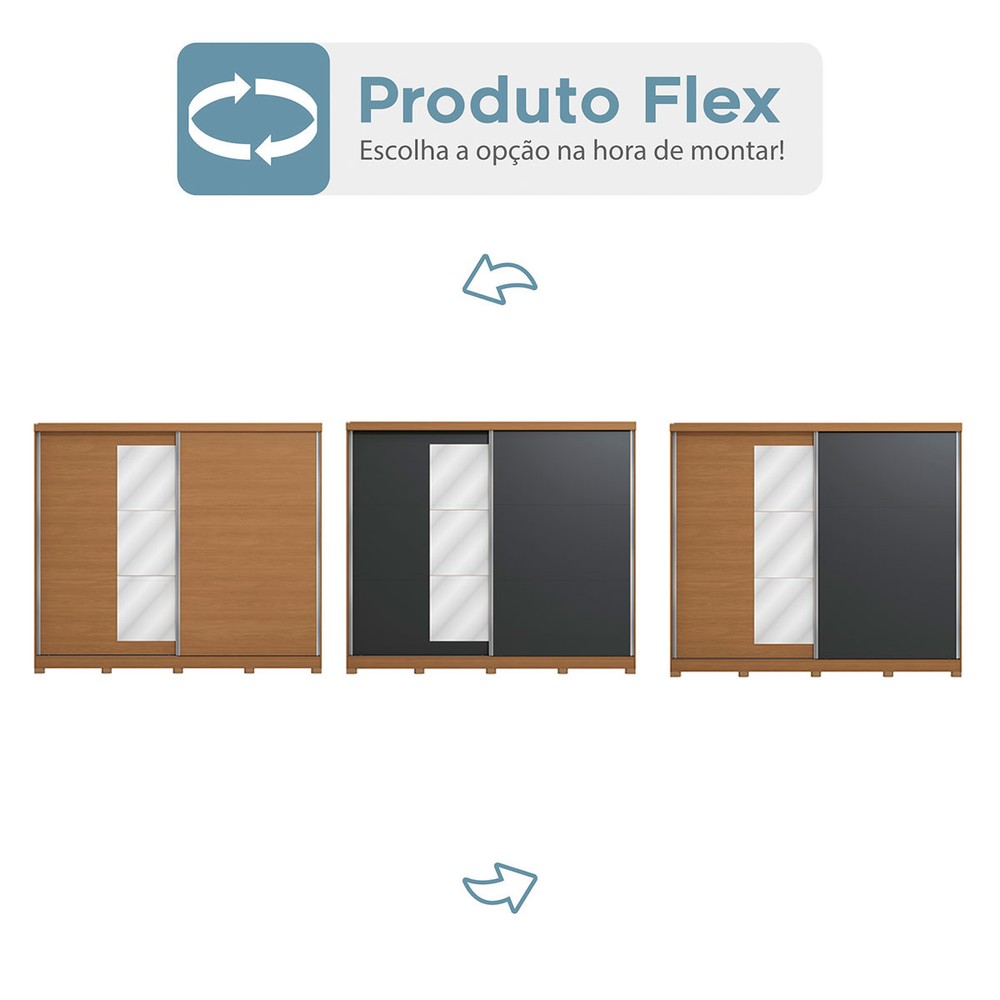 O(a) Guarda-Roupa Casal Villard 2 Portas 4 Gavetas com Espelho Flex Canela/Grafite - Kappesberg é produzido em MDP na escala de brilho Fosco, e possui um grau de dificuldade de montagem: Médio.