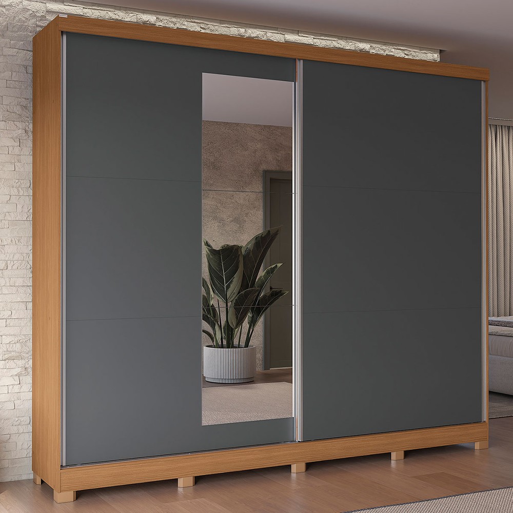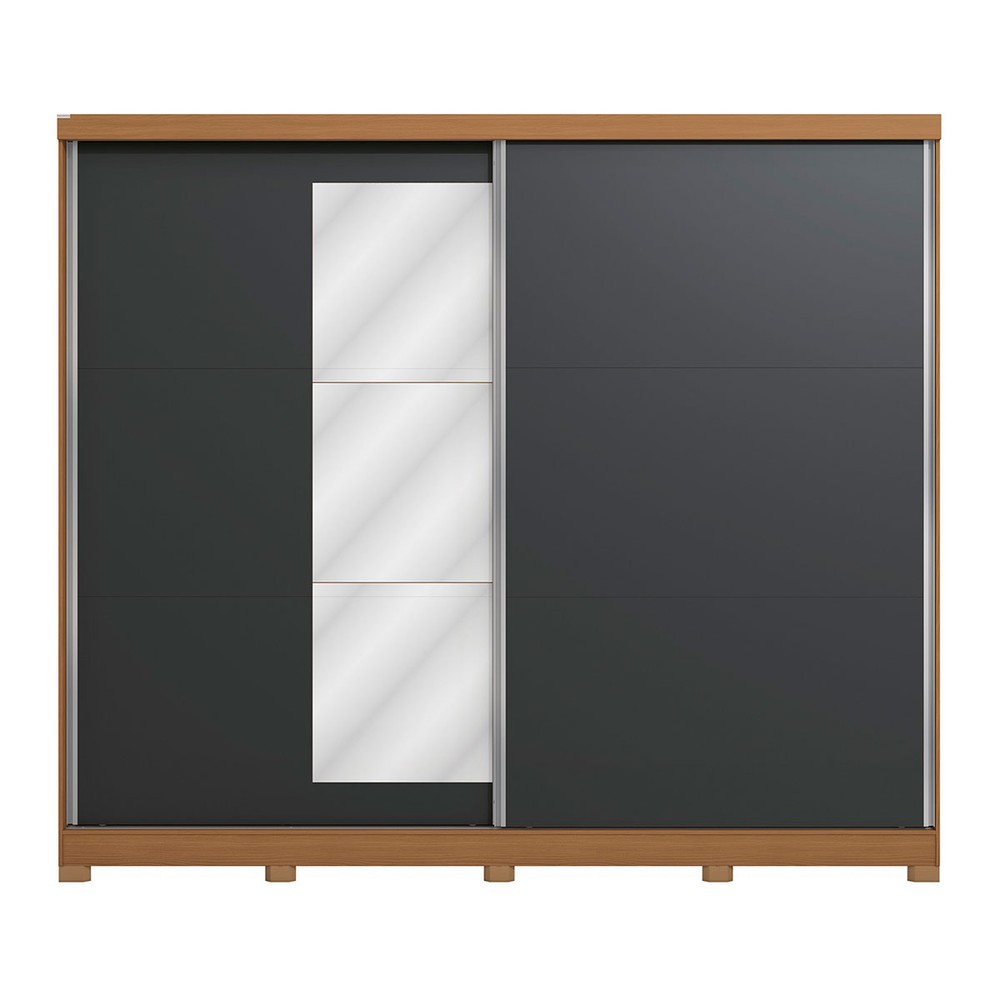 Guarda-Roupa Casal Villard 2 Portas 4 Gavetas com Espelho Flex Canela/Grafite - Kappesberg