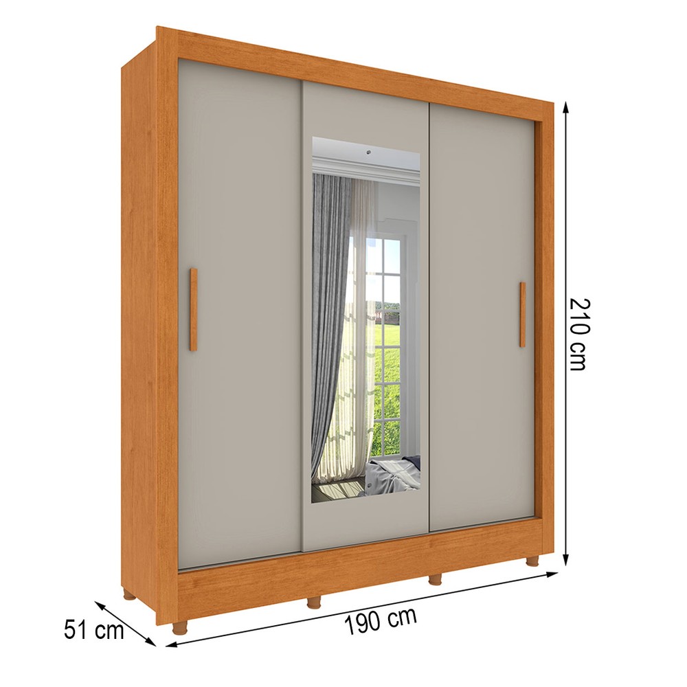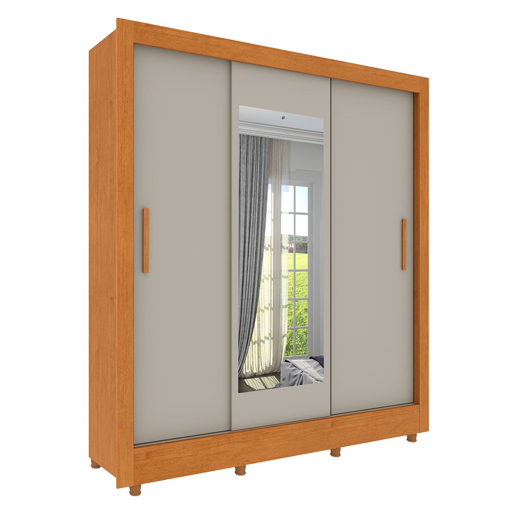 Guarda-Roupa Casal Vitória 3 Portas 4 Gavetas com Espelho Flex Cinamomo/Off White - Tcil Móveis