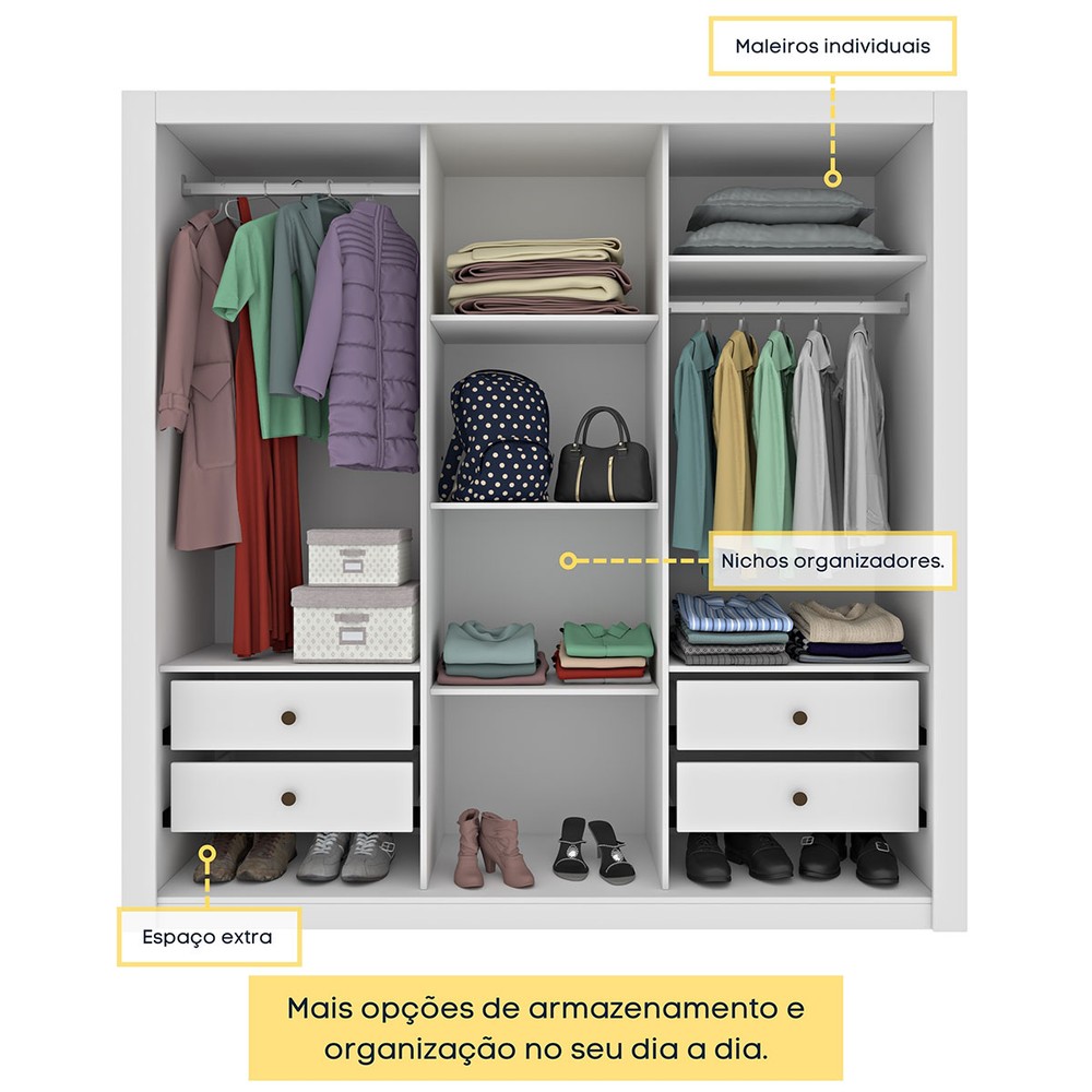 Guarda-Roupa Casal Vitória 3 Portas 4 Gavetas com Espelho Neve 33376 - Tcil Móveis