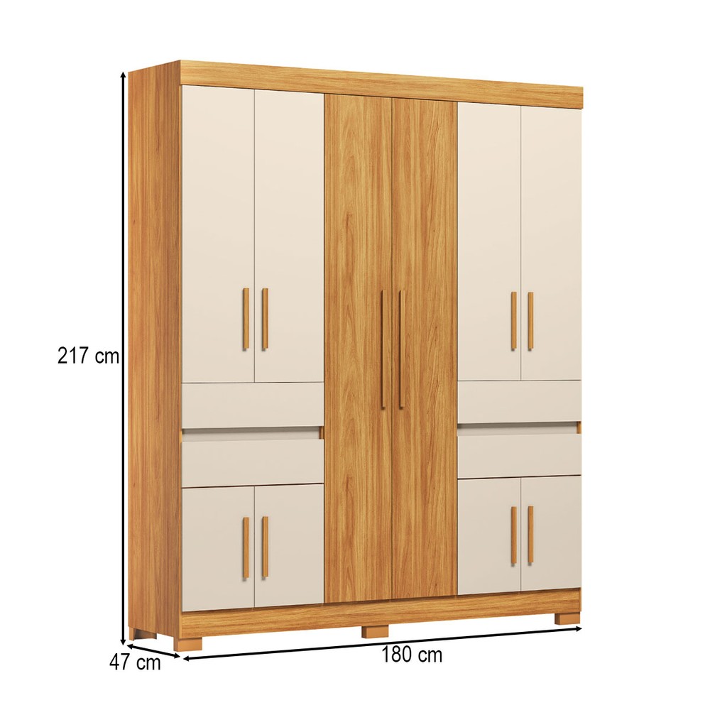 Guarda-Roupa Casal Vizanno 10 Portas 4 Gavetas Cinamon/Off-White - Demobile