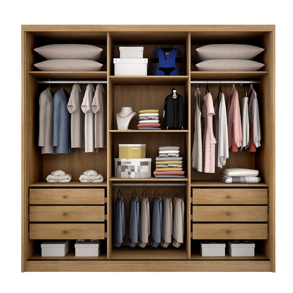 O(a) Guarda-Roupa Casal Medelim 3 Portas 6 Gavetas 100% Mdf Cumaru - Novo Horizonte é produzido em 100% MDF na escala de brilho Semi-Fosco, e possui um grau de dificuldade de montagem: Médio.