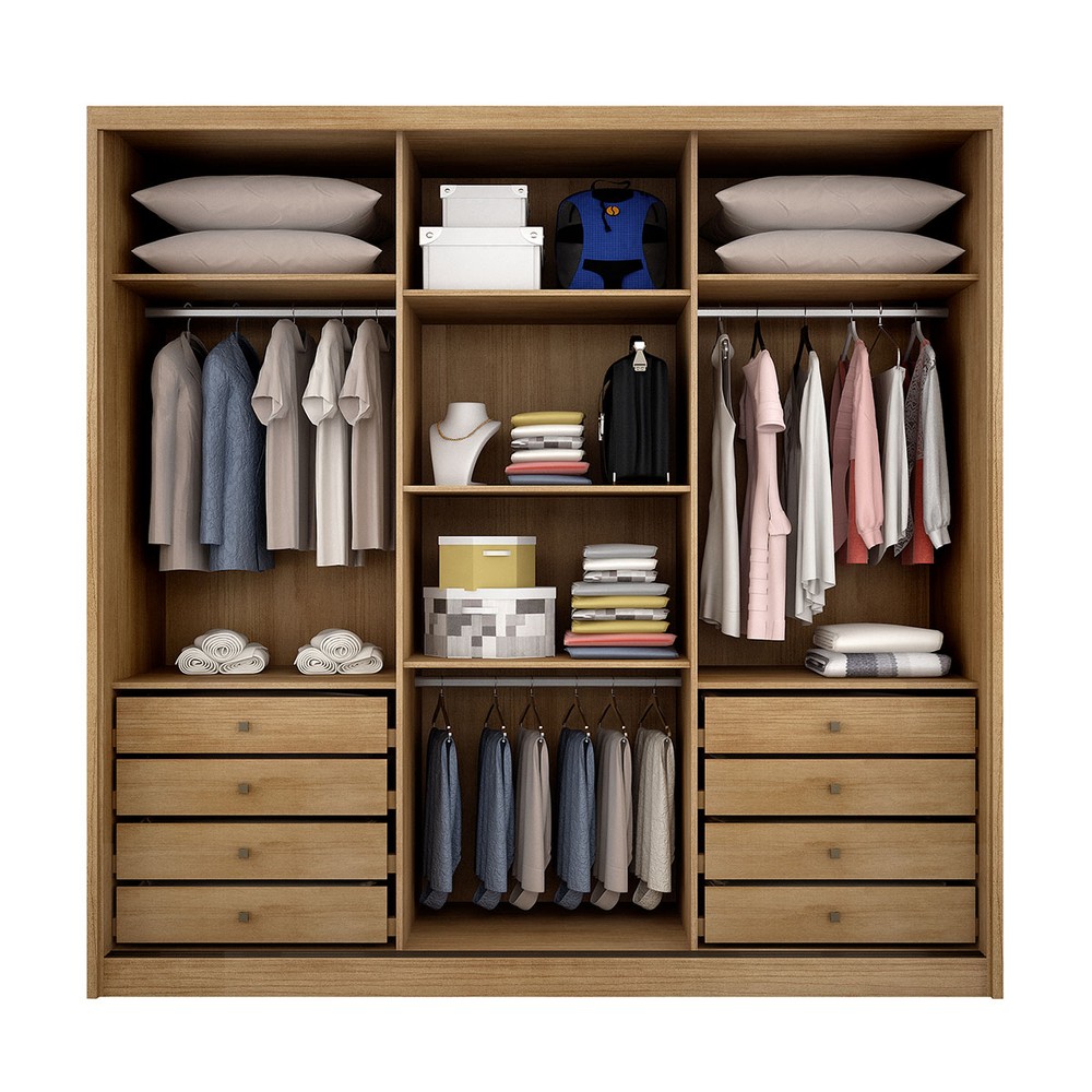 O(a) Guarda-Roupa Casal Medelim 3 Portas 8 Gavetas 100% Mdf com Espelho Cumaru - Novo Horizonte é produzido em 100% MDF na escala de brilho Semi-Fosco, e possui um grau de dificuldade de montagem: Médio.