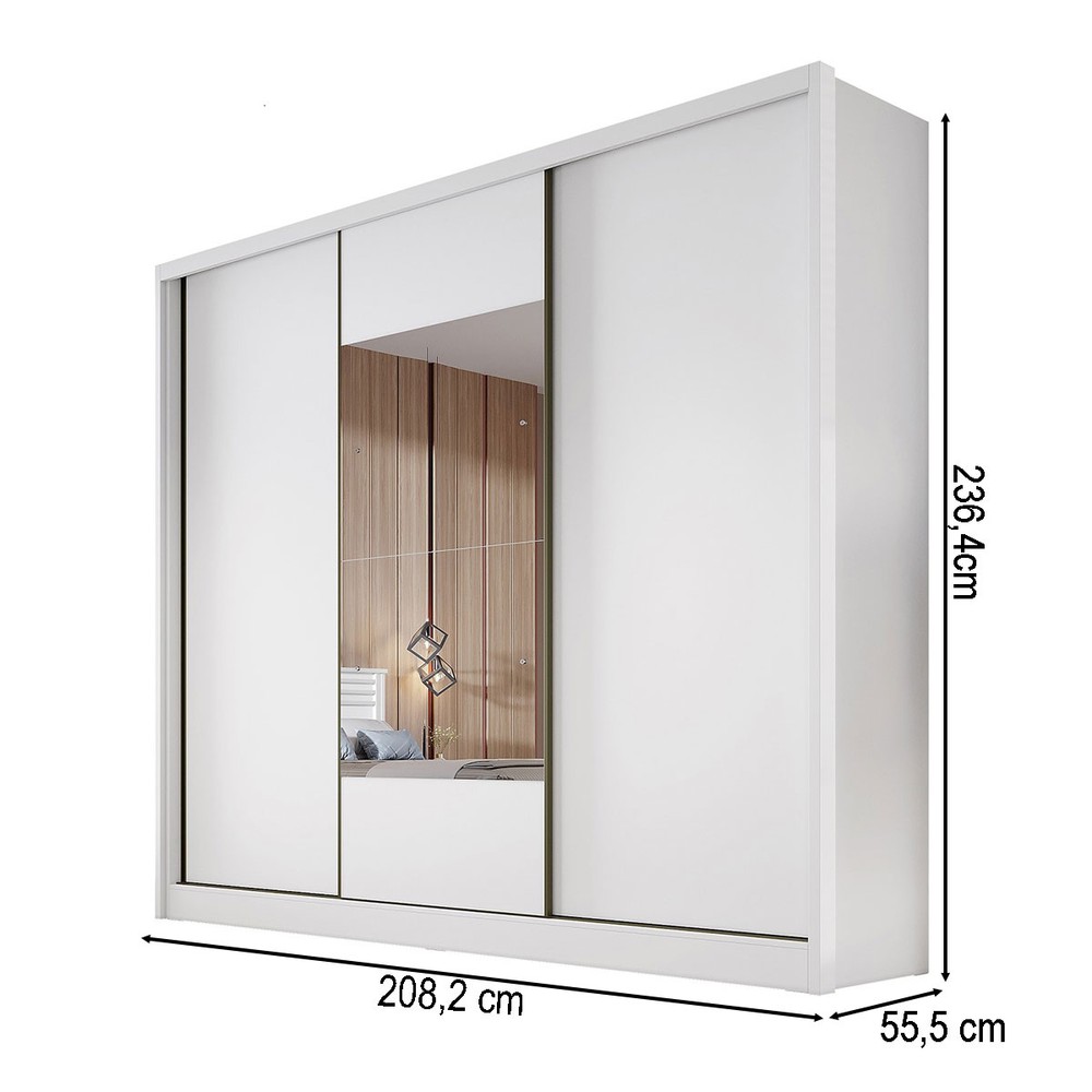 O(a) Guarda-Roupa Casal Volano 3 Portas 8 Gavetas 100% Mdf com Espelho Neve - Pnr Móveis é produzido em 100% MDF na escala de brilho Semi-Fosco, e possui um grau de dificuldade de montagem: Médio.