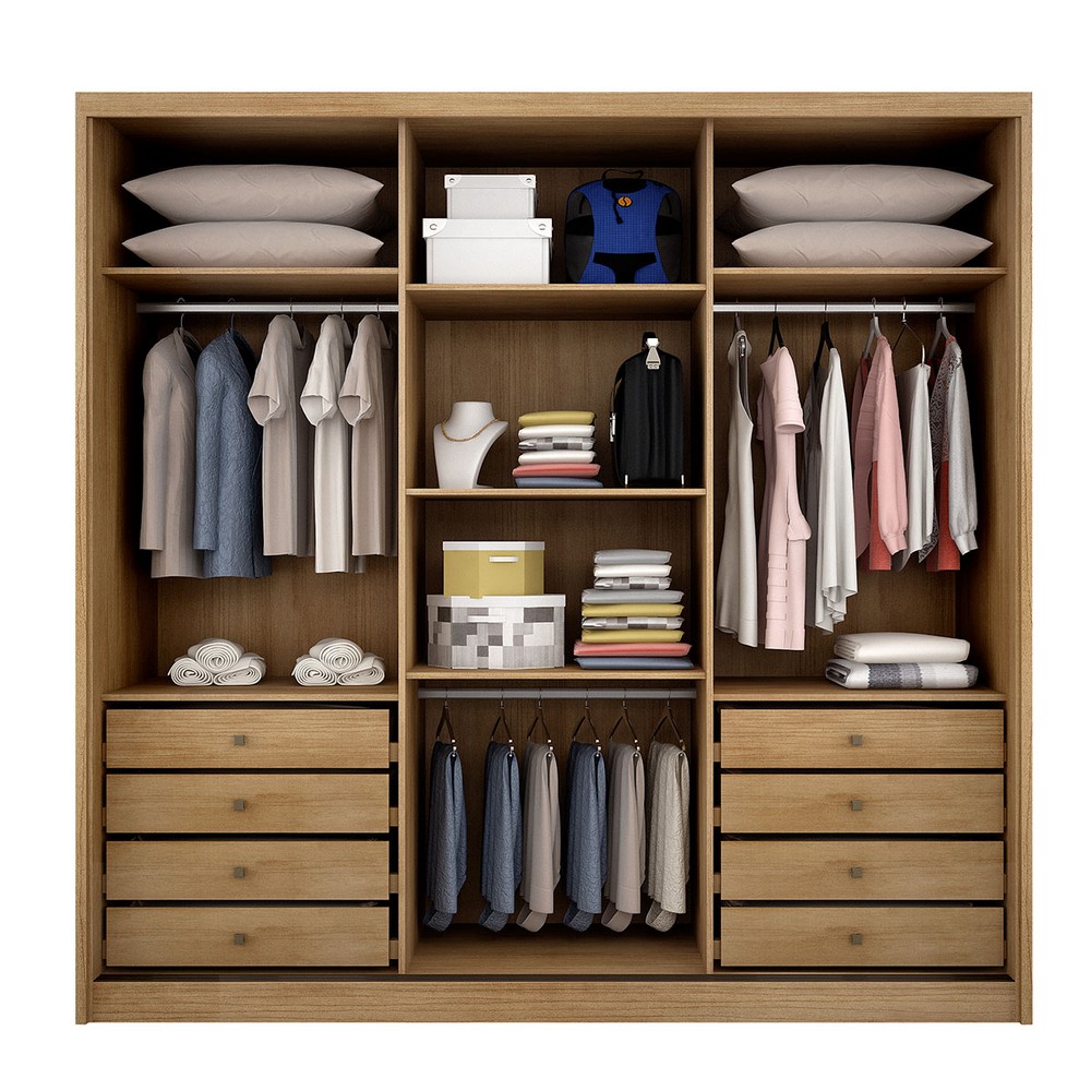 O(a) Guarda-Roupa Casal Medelim 3 Portas 8 Gavetas 100% Mdf Cumaru - Novo Horizonte é produzido em 100% MDF na escala de brilho Semi-Fosco, e possui um grau de dificuldade de montagem: Médio.