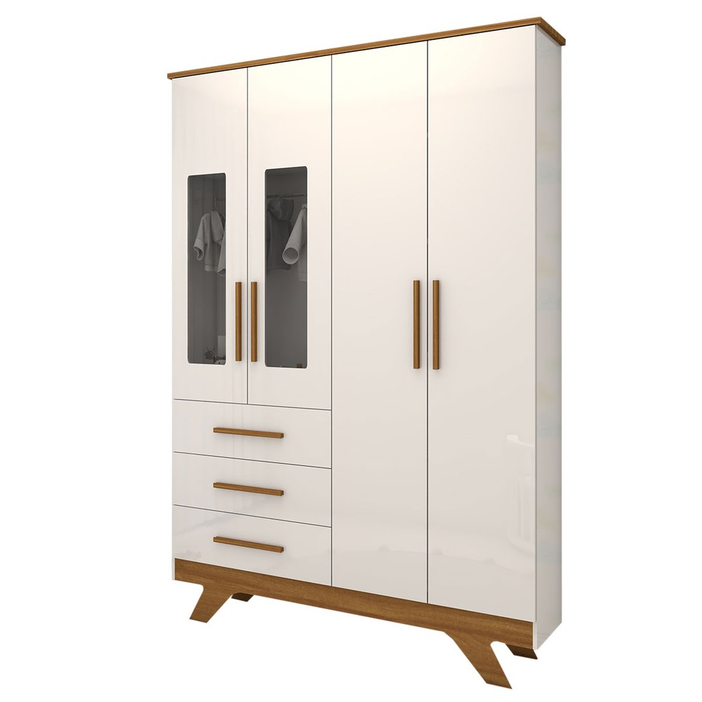O(a) Guarda-Roupa de Bebê Encanto 4 Portas 3 Gavetas 100% Mdf Branco Brilho/Amêndoa - Panorama Móveis é produzido em 100% MDF na escala de brilho Brilhante e Semi-Brilho, e possui um grau de dificuldade de montagem: Difícil.