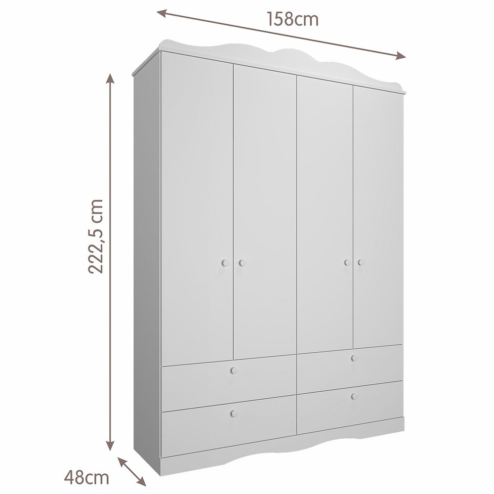O(a) Guarda-Roupa de Bebê Encanto 4 Portas 4 Gavetas 100% Mdf Branco - Permobili é produzido em 100% MDF na escala de brilho Semi-Fosco, e possui um grau de dificuldade de montagem: Médio.