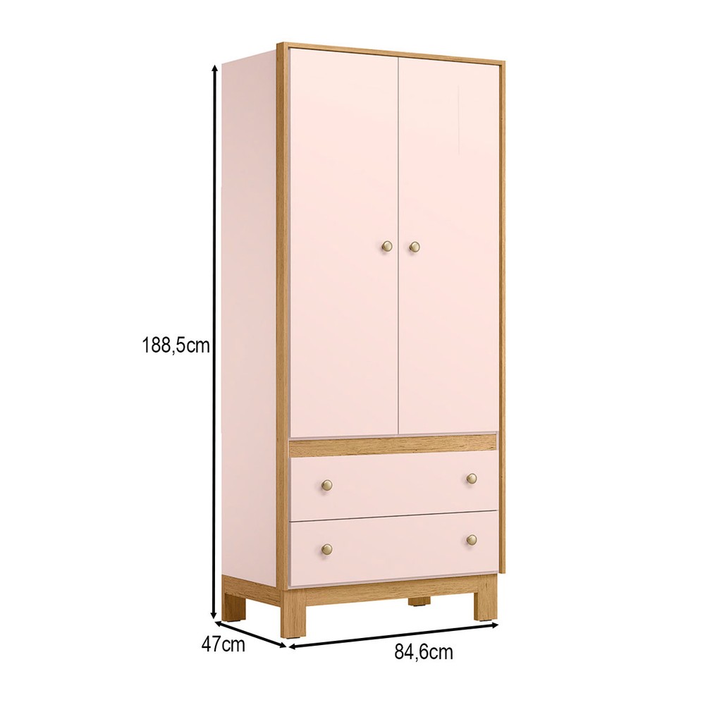 Guarda-Roupa de Bebê Flora 2 Portas 2 Gavetas Rosa Acetinado - Qmovi