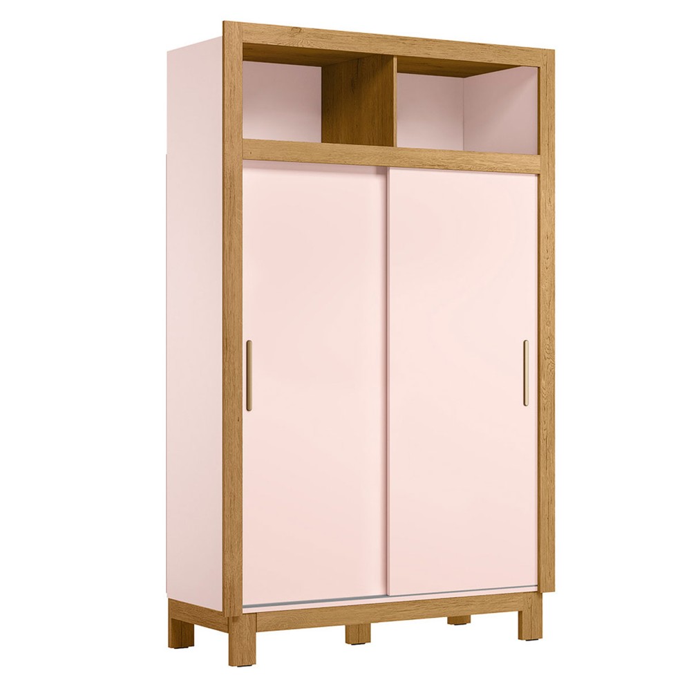 Guarda-Roupa de Bebê Flora 2 Portas 2 Gavetas Rosa Acetinado - Qmovi