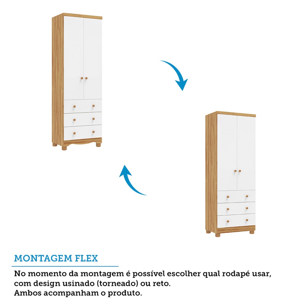 O(a) Guarda-Roupa Infantil Júnior New 2 Portas e 3 Gavetas 100% Mdf Branco Brilho/Amêndoa - Móveis Peroba é produzido em 100% MDF na escala de brilho Brilhante, e possui um grau de dificuldade de montagem: Médio.