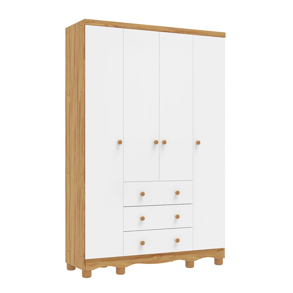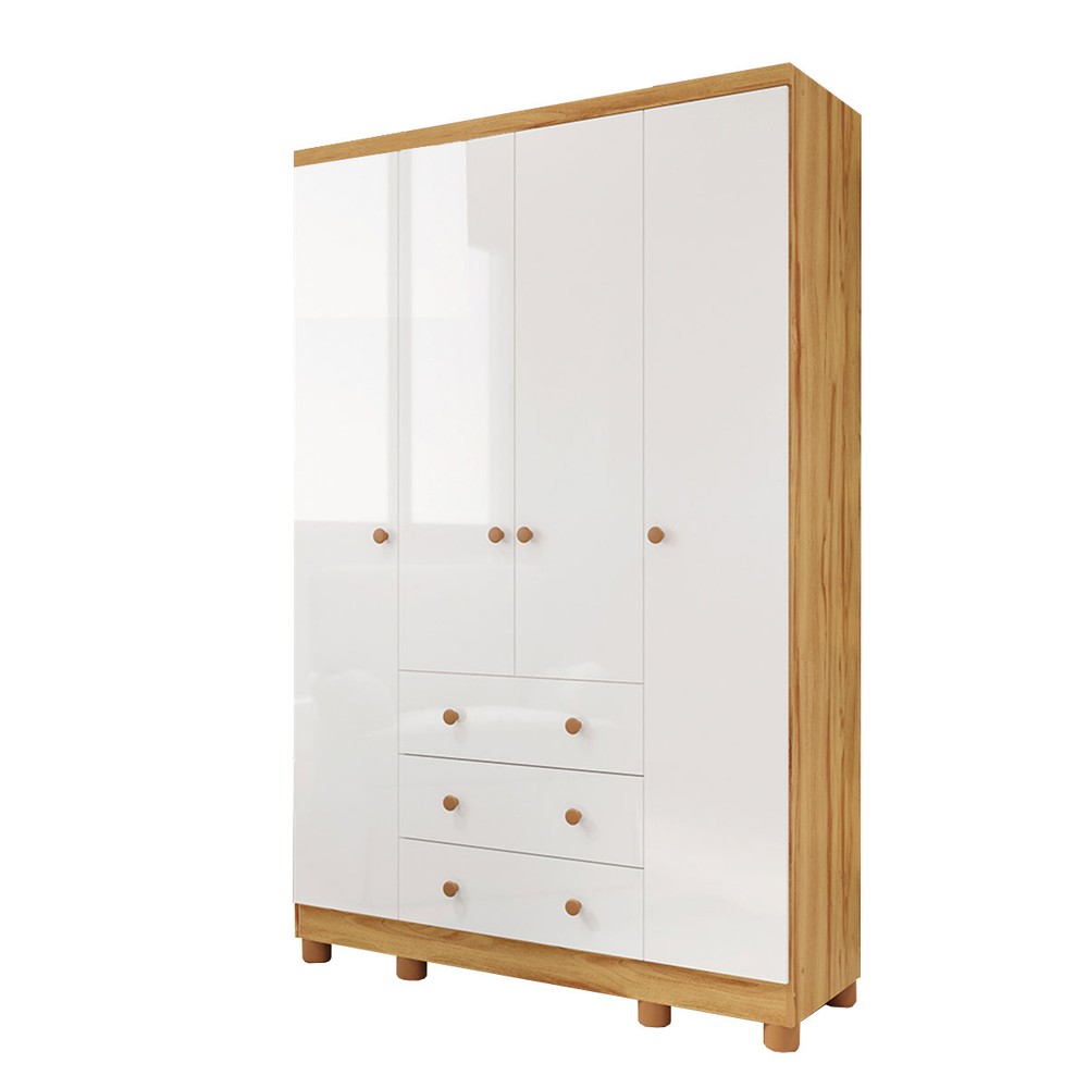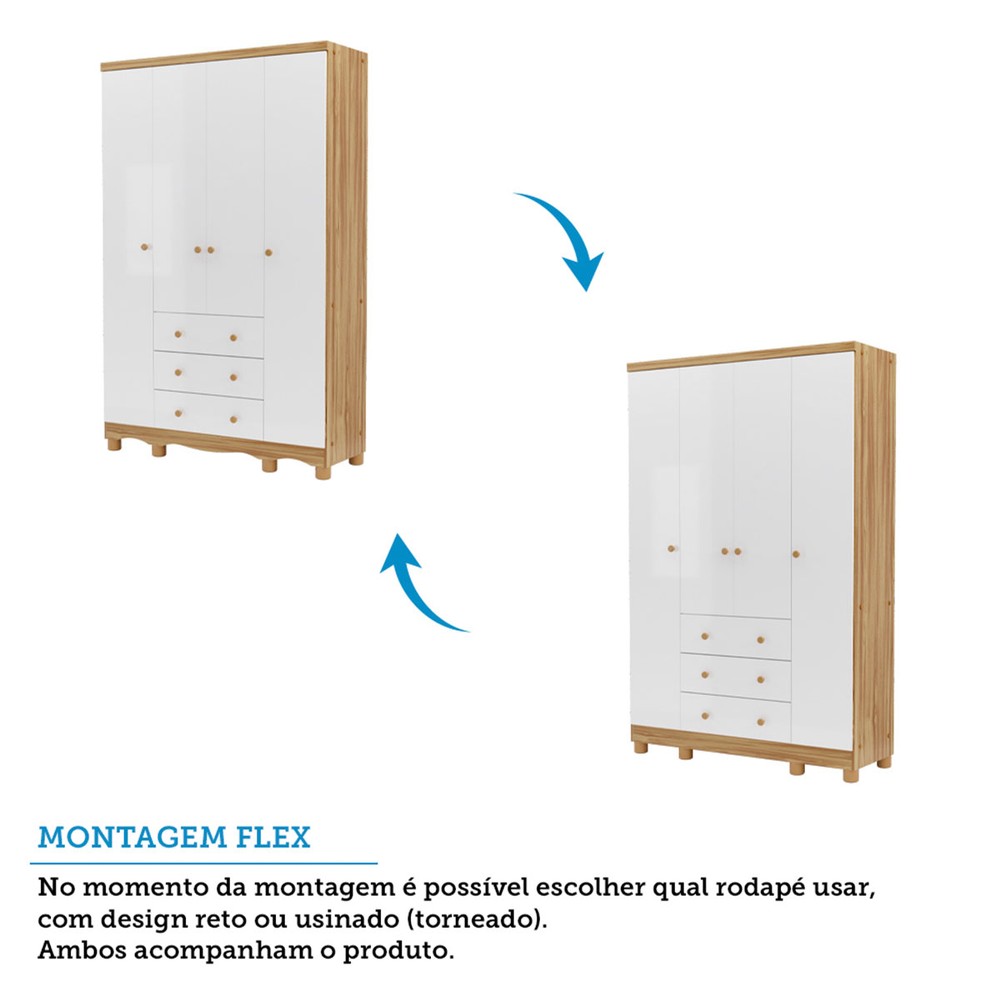 O(a) Guarda-Roupa Infantil Júnior New 4 Portas e 3 Gavetas 100% Mdf Branco Brilho/Amêndoa - Móveis Peroba é produzido em 100% MDF na escala de brilho Brilhante, e possui um grau de dificuldade de montagem: Médio.
