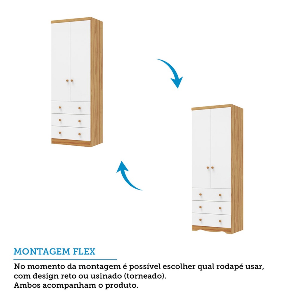 O(a) Guarda-Roupa Infantil Smim New 2 Portas e 3 Gavetas 100% Mdf Branco Brilho/Amêndoa - Móveis Peroba é produzido em 100% MDF na escala de brilho Brilhante, e possui um grau de dificuldade de montagem: Médio.