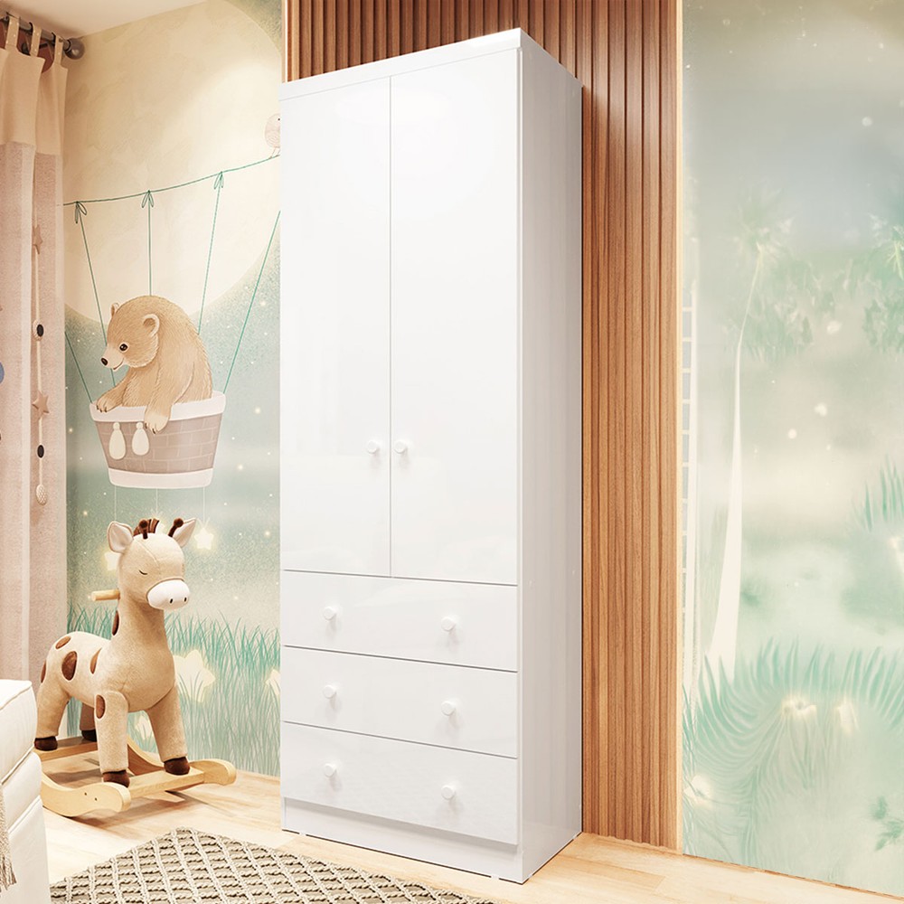 O(a) Guarda-Roupa Infantil Smim New 2 Portas e 3 Gavetas 100% Mdf Branco Brilho - Móveis Peroba é produzido em 100% MDF na escala de brilho Brilhante, e possui um grau de dificuldade de montagem: Médio.