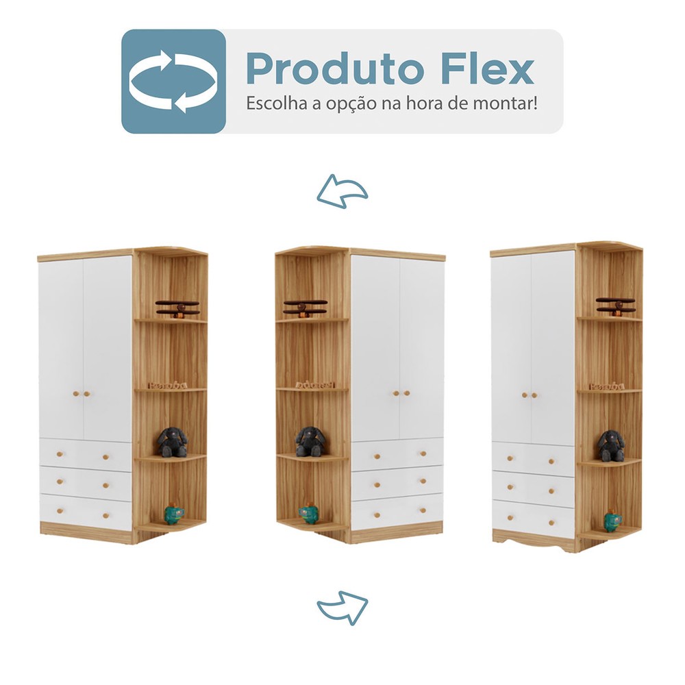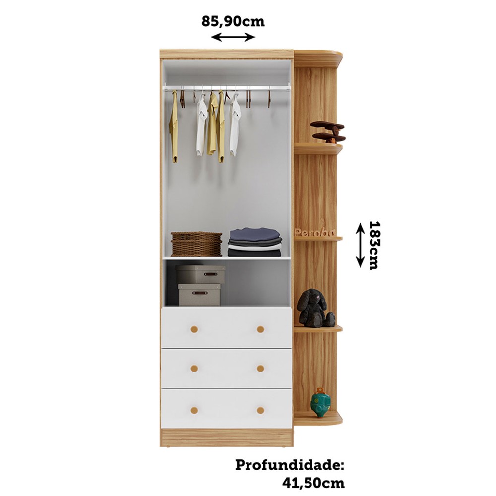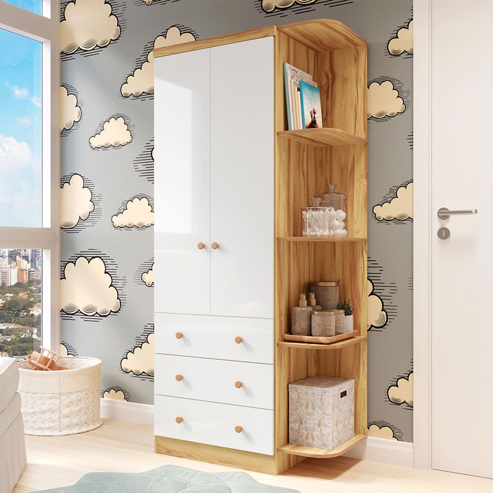 O(a) Guarda-Roupa Infantil Smim New 2 Portas e 3 Gavetas com Prateleira Externa 100% Mdf Branco Brilho/Amêndoa - Móveis Peroba é produzido em 100% MDF na escala de brilho Brilhante, e possui um grau de dificuldade de montagem: Médio.
