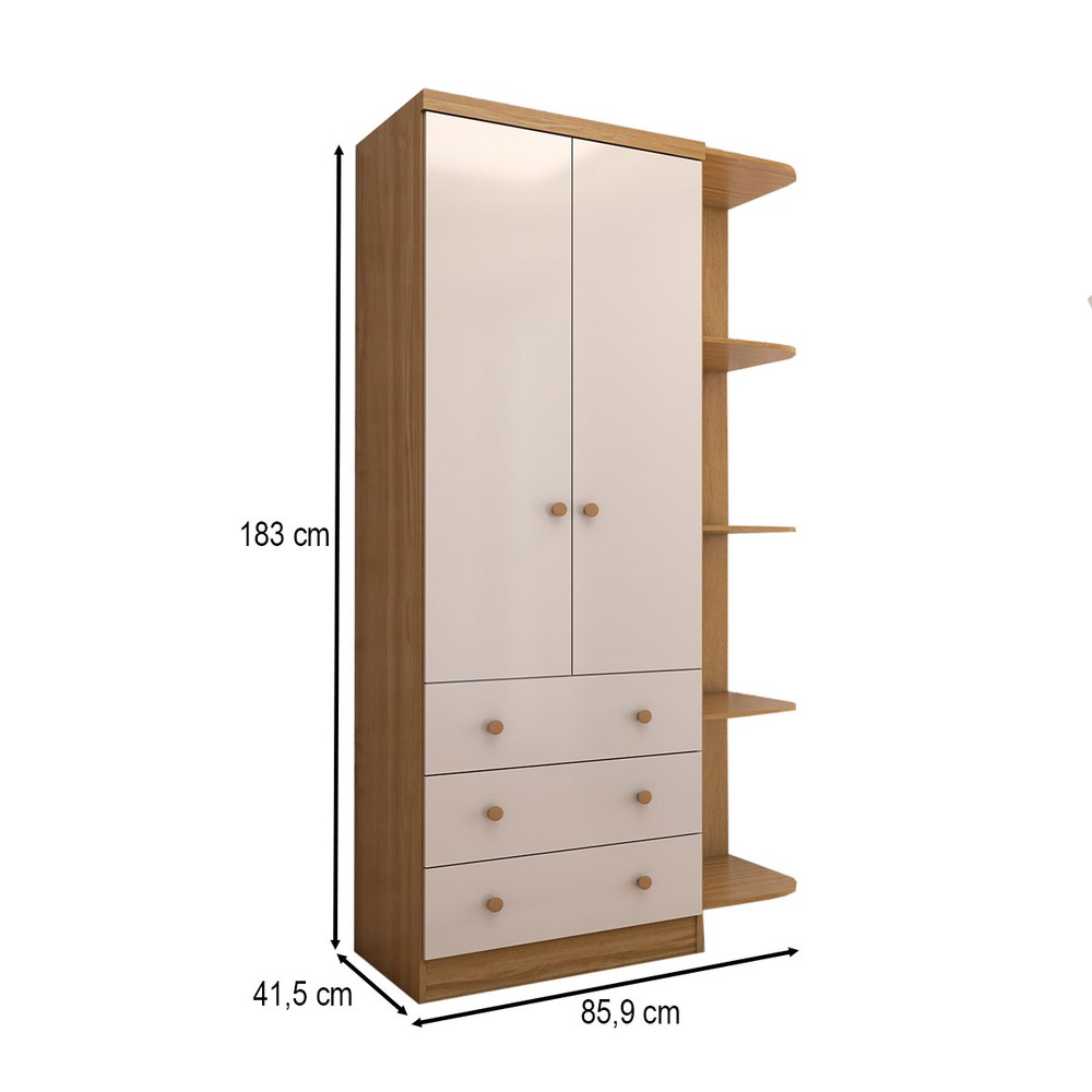 O(a) Guarda-Roupa de Bebê Sueño 2 Portas 3 Gavetas 5 Prateleiras 100% Mdf Branco/Amêndoa - Panorama Móveis é produzido em 100% MDF na escala de brilho Brilhante e Semi-Brilho, e possui um grau de dificuldade de montagem: Médio.