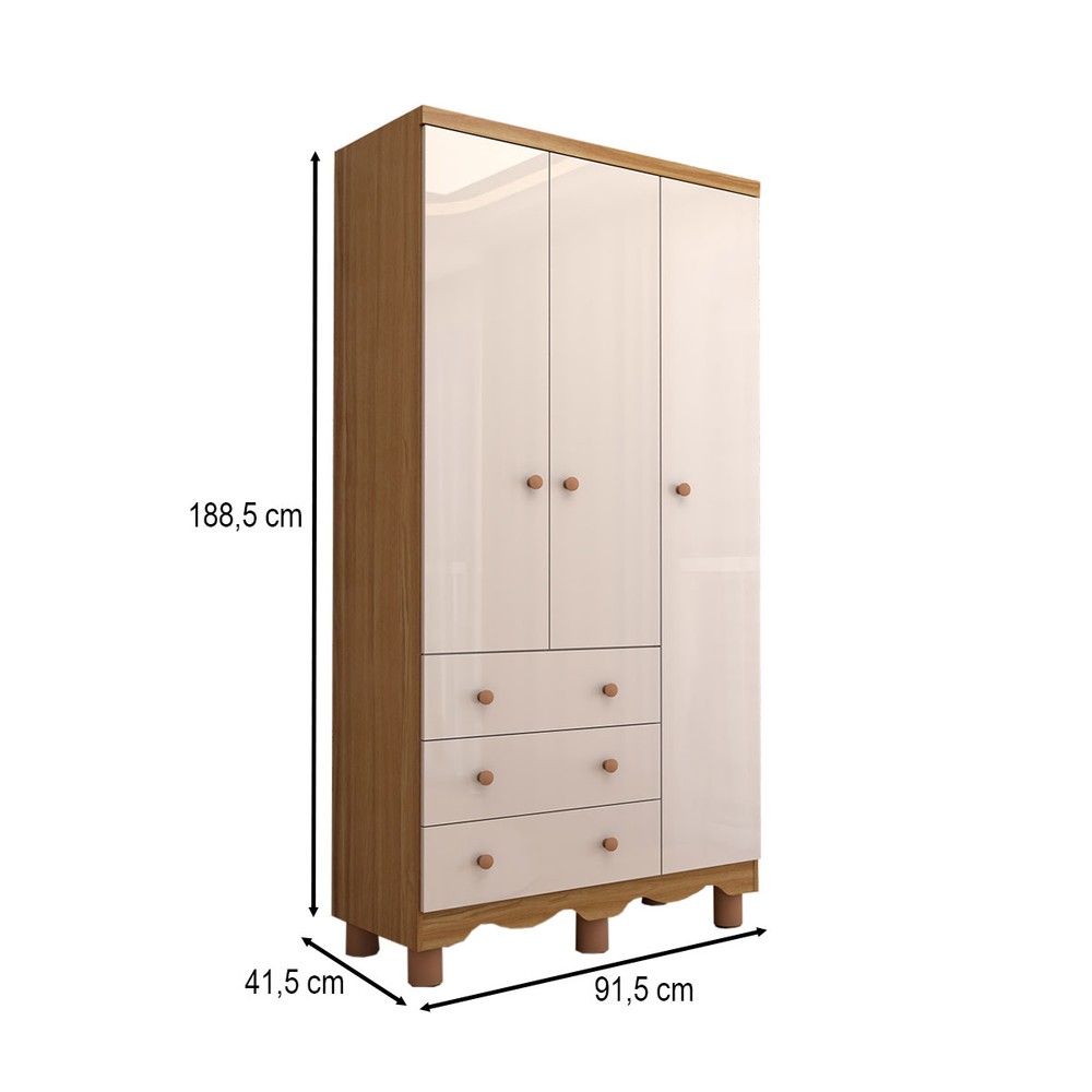 O(a) Guarda-Roupa de Bebê Sueño 3 Portas 3 Gavetas 100% Mdf Branco Brilho/Amêndoa - Panorama Móveis é produzido em 100% MDF na escala de brilho Brilhante, e possui um grau de dificuldade de montagem: Médio.