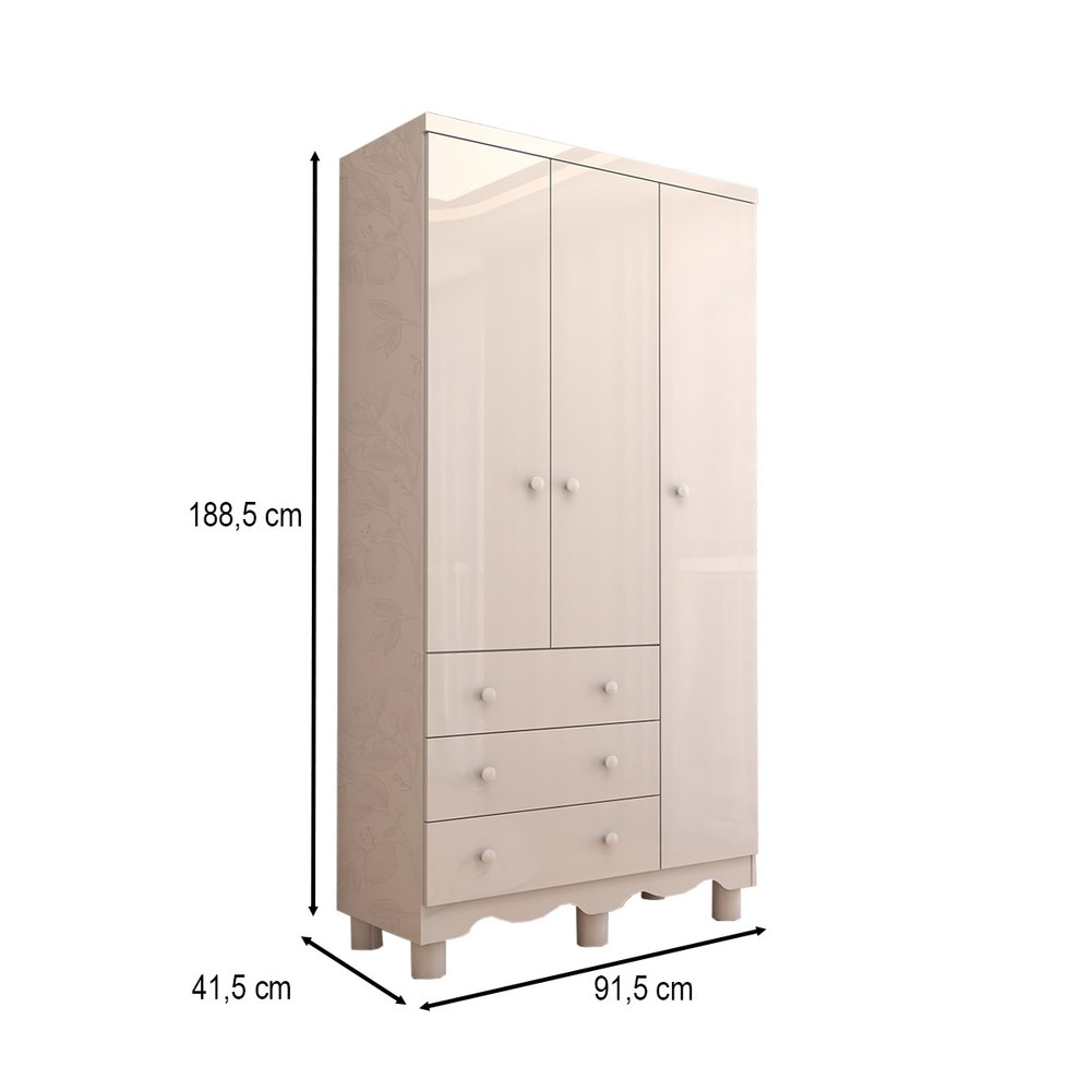 O(a) Guarda-Roupa de Bebê Sueño 3 Portas 3 Gavetas 100% Mdf Branco Brilho - Panorama Móveis é produzido em 100% MDF na escala de brilho Brilhante, e possui um grau de dificuldade de montagem: Médio.