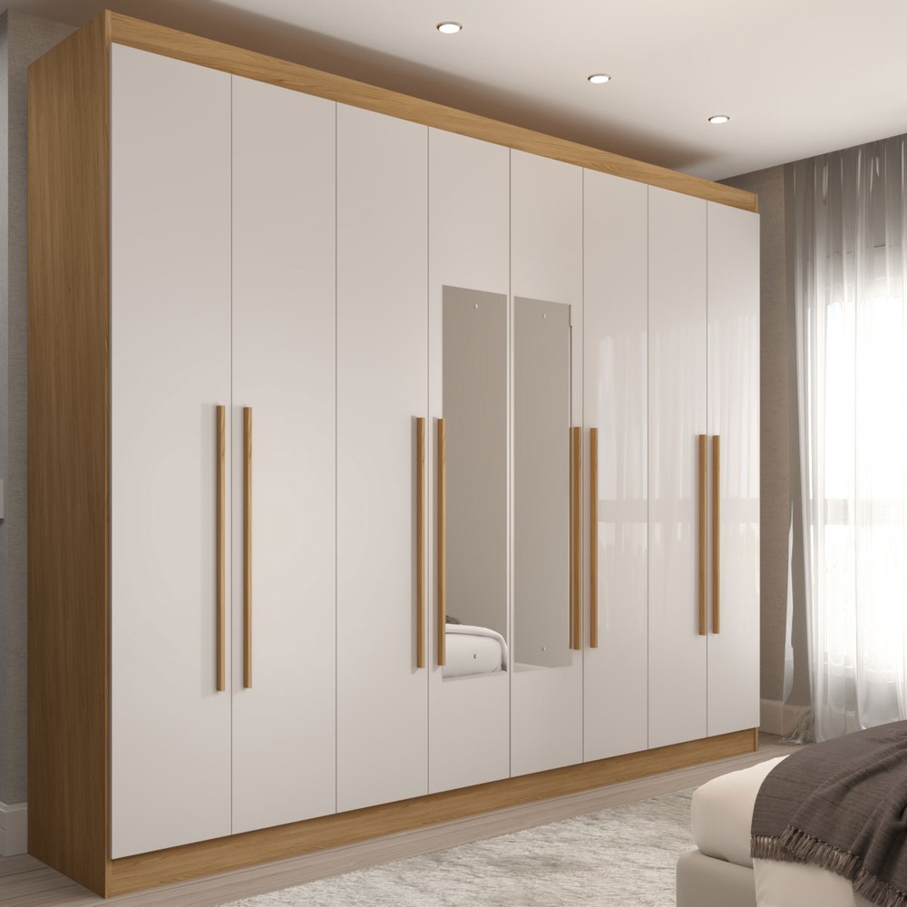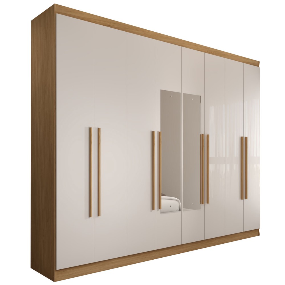 O(a) Guarda-Roupa Ele e Ela 8 Portas 4 Gavetas com Espelho Cinamomo/Off White - Panorama Móveis é produzido em MDP na escala de brilho Semi-Fosco, e possui um grau de dificuldade de montagem: Médio.