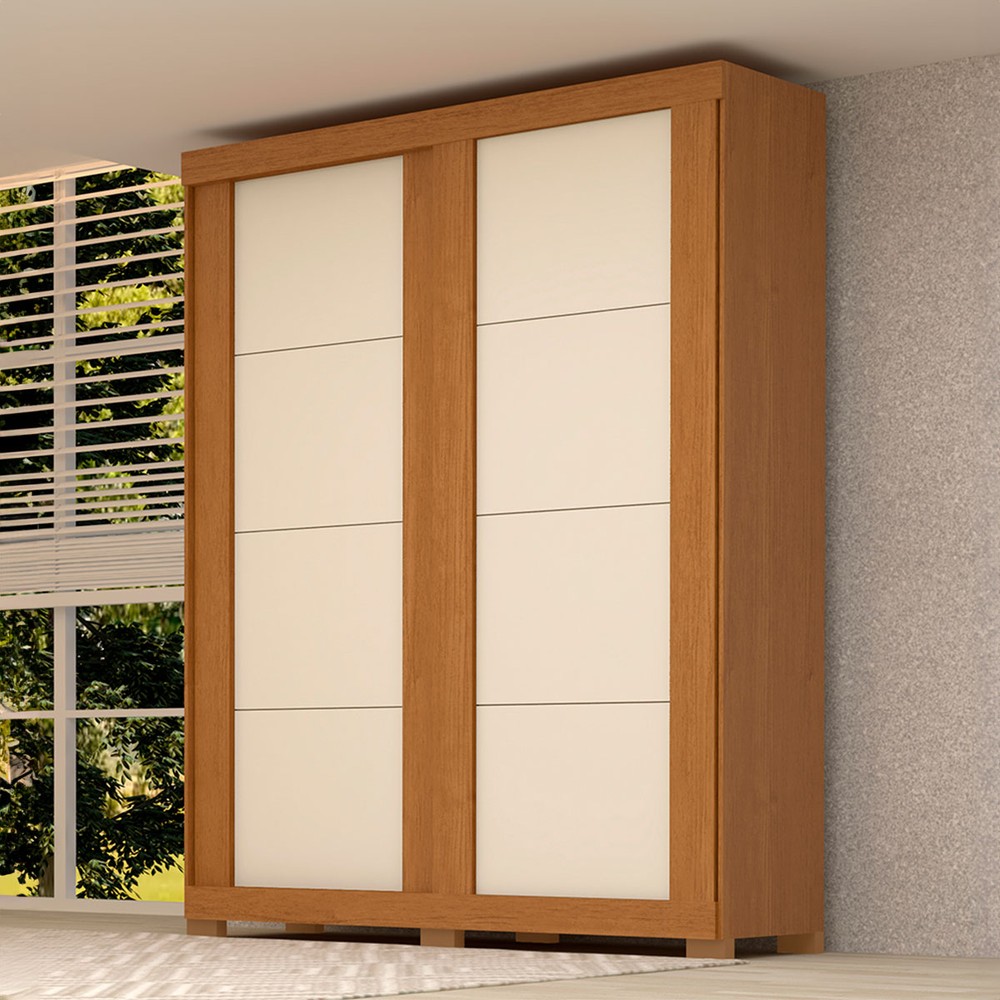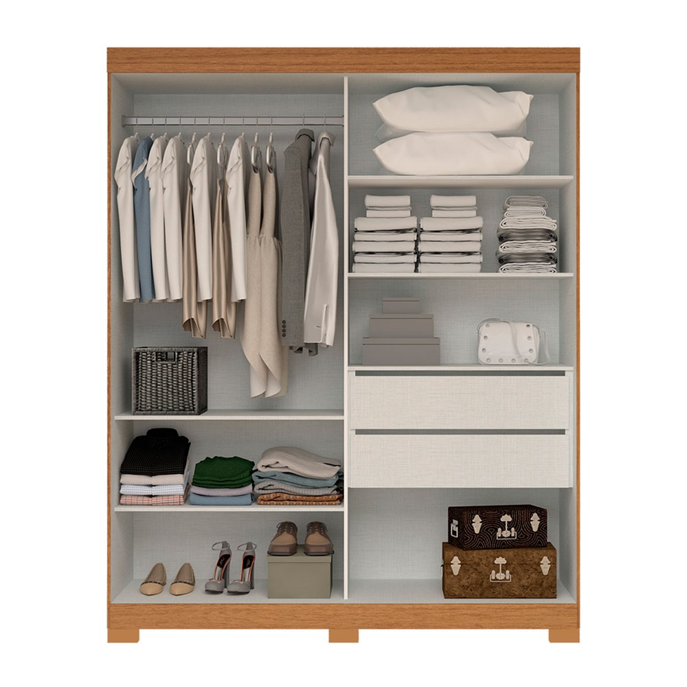 O(a) Guarda-Roupa Helena 2 Portas 2 Gavetas 100% Mdf Flex Cinamomo/Off White - Acp Móveis é produzido em 100% MDF na escala de brilho Brilhante e Semi-Brilho, e possui um grau de dificuldade de montagem: Difícil.