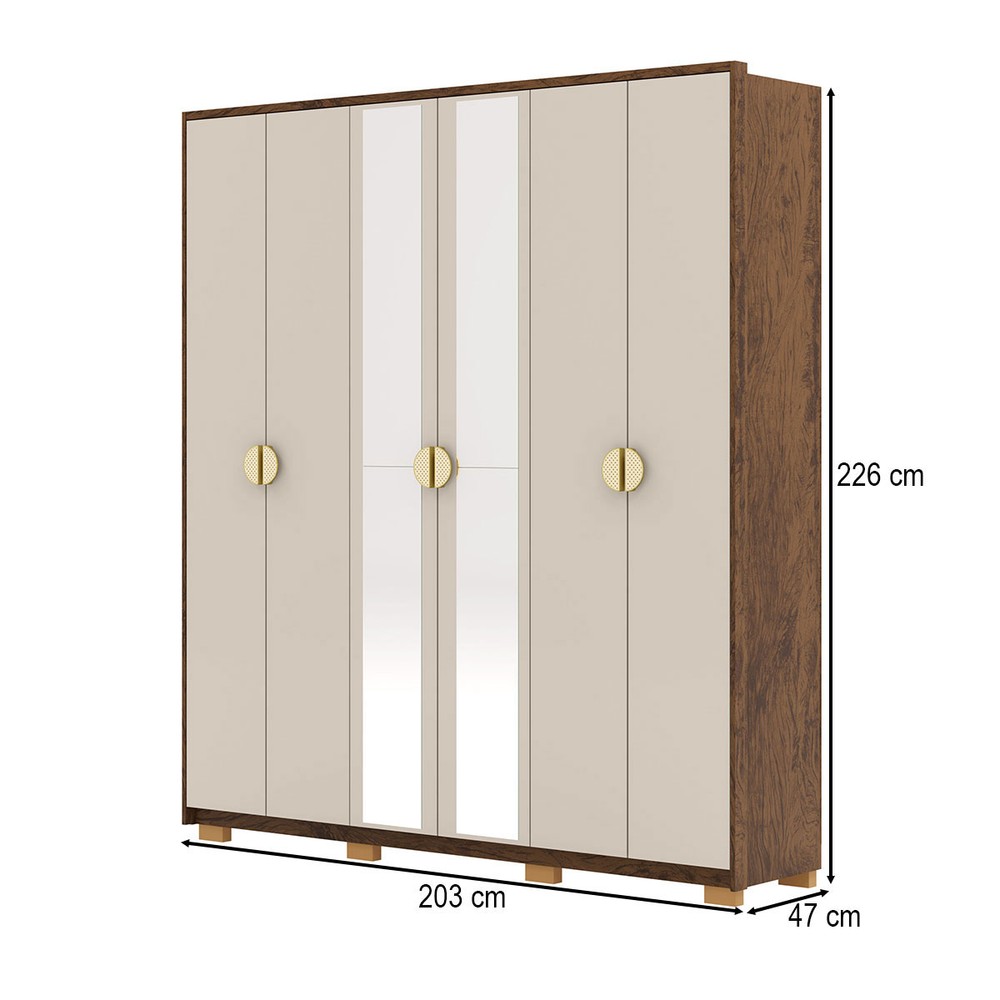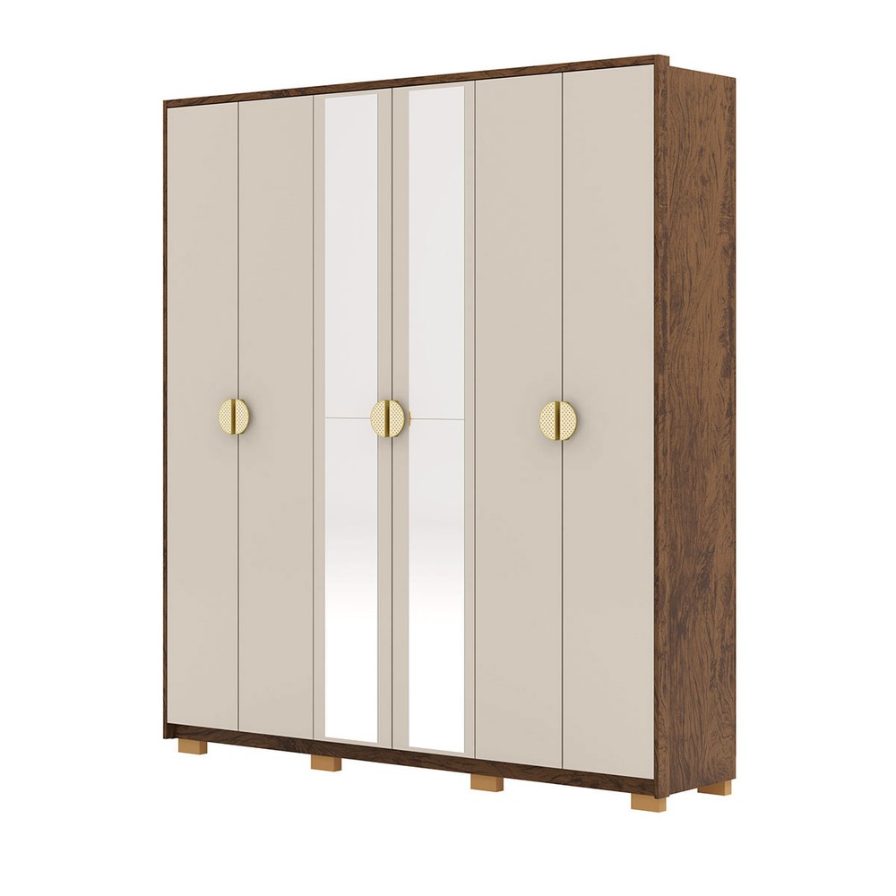 O(a) Guarda-Roupa Igaratá 6 Portas 4 Gavetas 100% Mdf com Espelho Imbuia/Fendi - Pnr Móveis é produzido em 100% MDF na escala de brilho Fosco, e possui um grau de dificuldade de montagem: Médio.